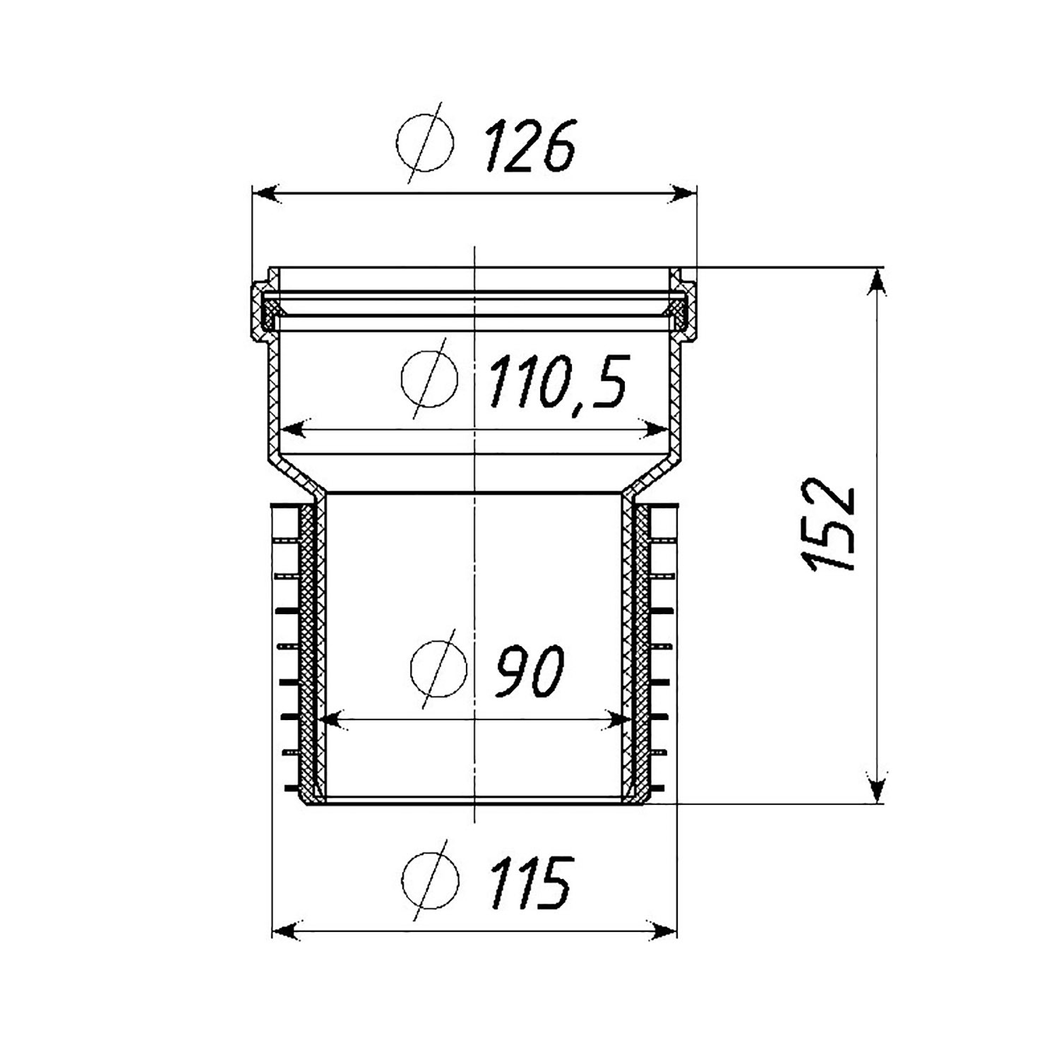 Используется для жесткого и герметичного соединения с раструбными/безраструбными трубами. Предназначен для перехода с пластикового трубопровода на чугунный/стальной. Жесткое и герметичное соединение осуществляется благодаря конусной конструкции резиновой манжеты и её многоуровневым эластичным лепесткам.