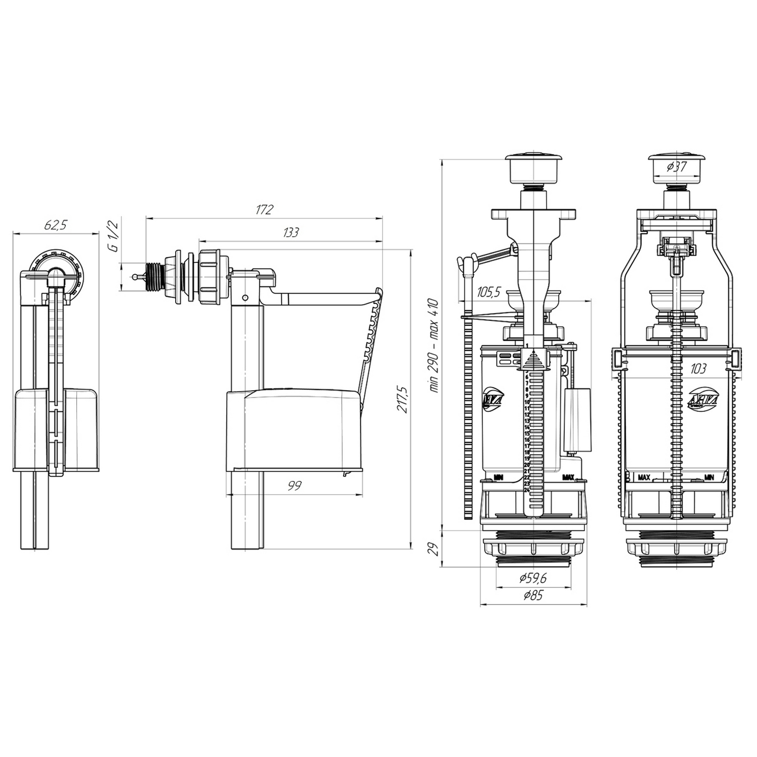 Арматура является важным механизмом, необходимым для правильной работы сливного бачка.Изделие произведено из высококачественного пластика, который обеспечивает длительную эксплуатацию без поломок.Наливной механизм с боковой подводкой и пластиковой резьбой диаметром G 1/2".Сливной механизм с двойной металлизированной кнопкой и с двойным режимом слива можно регулировать по высоте от 290 до 410 мм.Отверстие для кнопки слива в крышке бачка - 40 мм, посадочное отверстие сливной арматуры - 60 мм.Комплектация: сливная арматура, заливная арматура, инструкция, упаковкаКомпания "АНИ пласт" является российским производителем водосливной арматуры.Высокие требования при выборе сырья, строжайшее соблюдение технологии производства позволяет компании давать гарантию 10 лет на всю выпускаемую продукцию.Вся продукция изготовлена из высококачественного полипропилена и укомплектована необходимыми для сборки элементами. Комплектующие также произведены из современных материалов: сливные решетки - из нержавеющей стали, винты - из хромированной латуни, плоские или конические прокладки - из пластиката. Каждое изделие имеет индивидуальную упаковку из полиэтилена. Продукция упаковывается в фирменные коробки из гофрокартона с индивидуальной этикеткой, на которой указана необходимая информация. Коробки снабжены перфорацией, позволяющей вынимать изделия из коробки, не открывая ее.Компания "АНИ пласт" - лидер в сегменте недорогой и качественной сантехники.