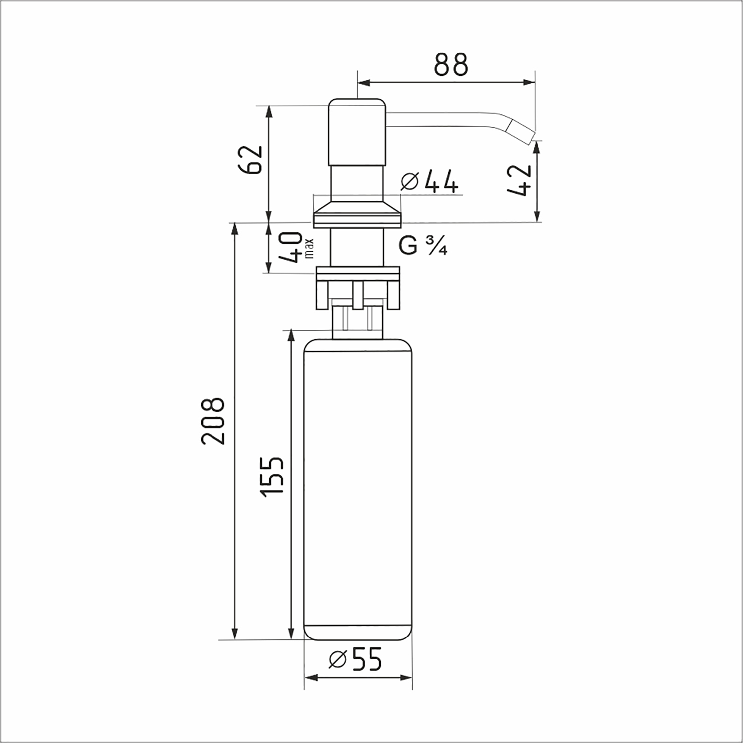 Врезной дозатор для жидкого мыла MIXLINE встраивается в мойку или в столешницу возле нее. Емкость со средством скрыта под поверхностью, сверху остается лишь носик устройства. Дозатор можно заправить не только мылом, но и гелем для мытья посуды. Отлично сочетается с мойками и смесителями MIXLINE PRO.