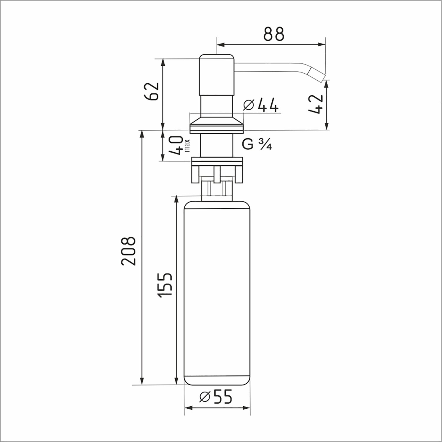 Врезной дозатор для жидкого мыла MIXLINE встраивается в мойку или в столешницу возле нее. Емкость со средством скрыта под поверхностью, сверху остается лишь носик устройства. Дозатор можно заправить не только мылом, но и гелем для мытья посуды. Отлично сочетается с мойками и смесителями MIXLINE PRO.