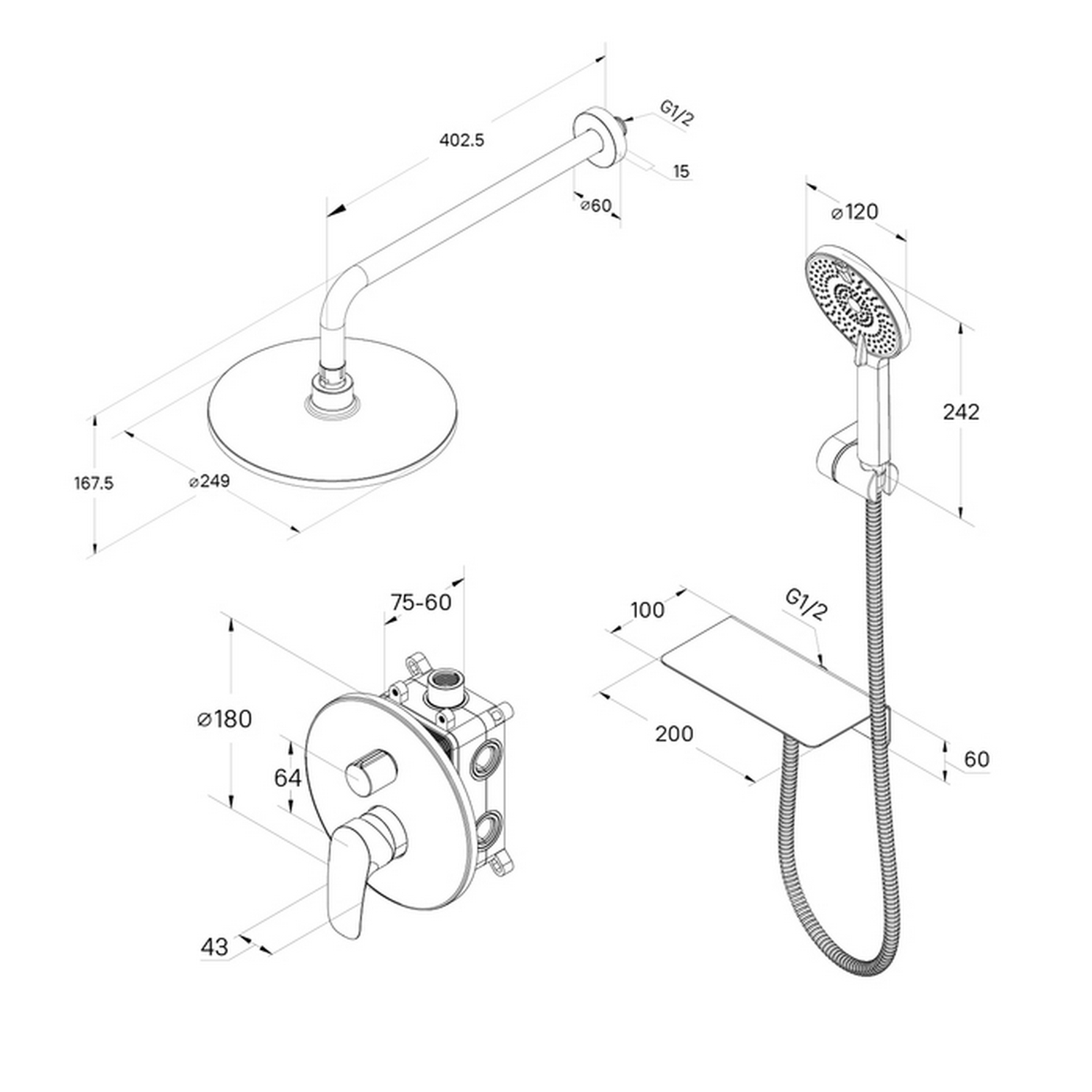 Лейки, душевые панели, стойки и гарнитуры