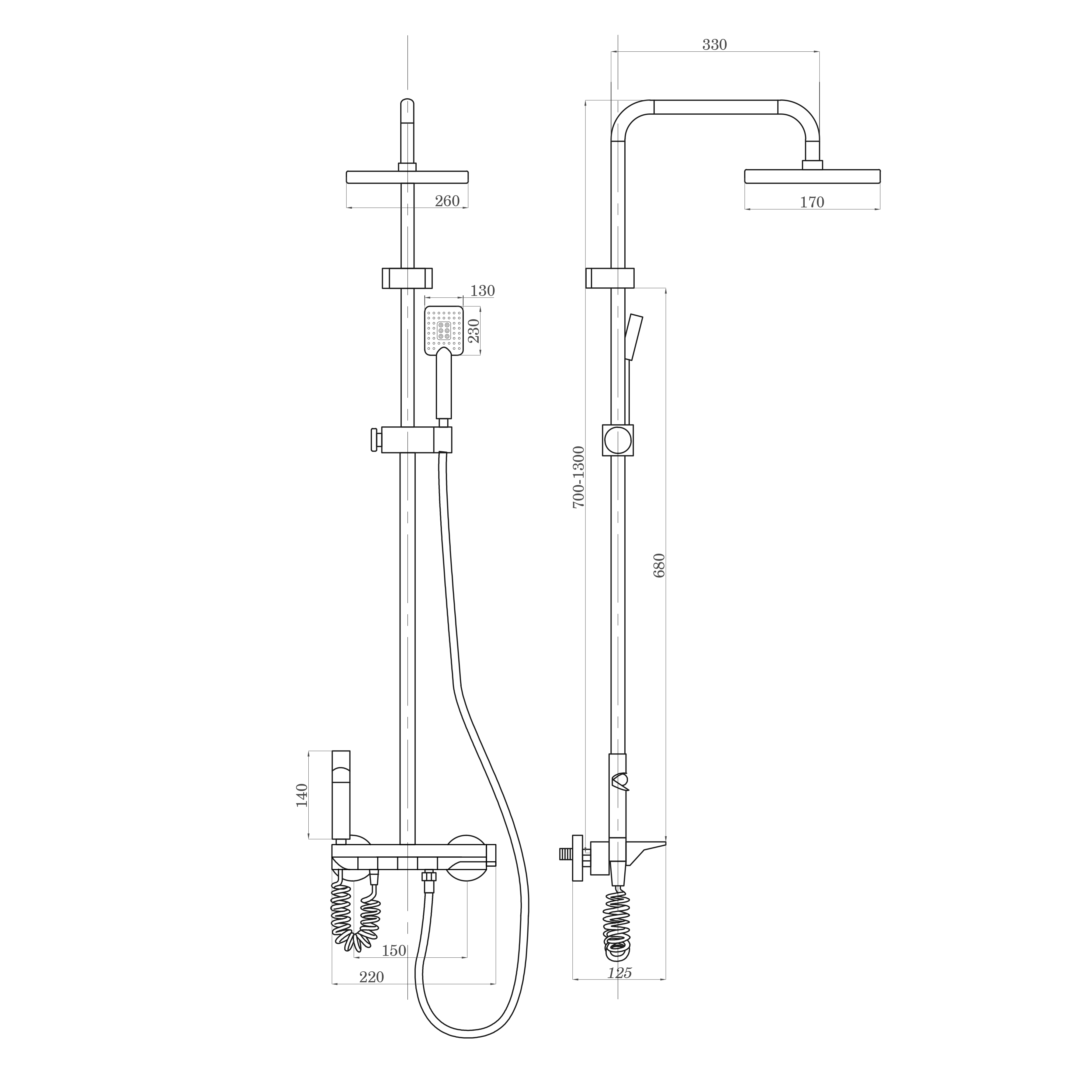 Душевая система ПРОФСАН ПСМ-900-81GA многофункциональная и может работать в 4 режимах: верхний тропический душ, ручная лейка, гигиенический душ, излив. Это современное оборудование, которое отвечает всем необходимым требованиям качества и функциональности. Клавишное управление обеспечивает максимально простое переключение множества режимов. А стильный внешний вид станет отличным выбором для интерьеров в стиле хайтек.Модель четырехпозиционная, что означает возможность функционирования в 4 форматах: верхний душ, лейка на гибком шланге, гигиенический душ, излив.Тропический душ в модели ПРОФСАН ПСМ-900-81GA обеспечен прямоугольной лейкой с большой шириной охвата. Центральные отверстия в количестве 8 шт. (2 на 4) образуют внутренний прямоугольник и отличаются от периферийных выходов внешним видом форсунок и типом потока.Ручной душ обеспечит комфорт во время водных процедур. Можно направлять воду на определённые участки тела, например, облегчить боль в мышцах после силовой тренировки или вымыть волосы. Ручную насадку можно поднести ближе к телу и комфортно помыться даже при низком давлении воды. Форма ручной лейки также прямоугольная и по дизайну соответствует верхнему душу. Она режимная, что позволит переключать потоки воды в нескольких вариантах.Лейка гигиенического душа имеет небольшой размер и цилиндрическую форму. Она крепится непосредственно на блоке управления, откуда ее удобно брать для использования. Лейка предназначена для точечных гигиенических процедур. Она имеет спиралевидный компактный шланг, который при необходимости растягивается на нужную длину.Душевая система оснащена статичным изливом. Благодаря ему, можно направить поток воды в ванную или просто в пол в душевой кабине.Клавишное управление обеспечивает моментальное переключение режимов. Над каждой клавишей нанесен рисунок, указывающий на режим. Управляющий блок довольно плоский и при этом широкий. При необходимости сверху на нем можно разместить гель для душа, мыло или шампунь. Справа рядом с ручкой регулирования указана температурная индикация. По умолчанию температура при включении составит 40 градусов.Душевая система PSM-900-81GA выполнена из авиаля (авиационный алюминий). Это сплав алюминия с добавлением различных элементов, таких как магний, марганец, кремний, цинк и прочие. Добавки значительно улучшают характеристики алюминия, делая его более прочным, стойким к коррозии и способным выдерживать высокие и низкие температуры.Современный металлически-серый цвет графит отлично смотрится в различных дизайнах.
