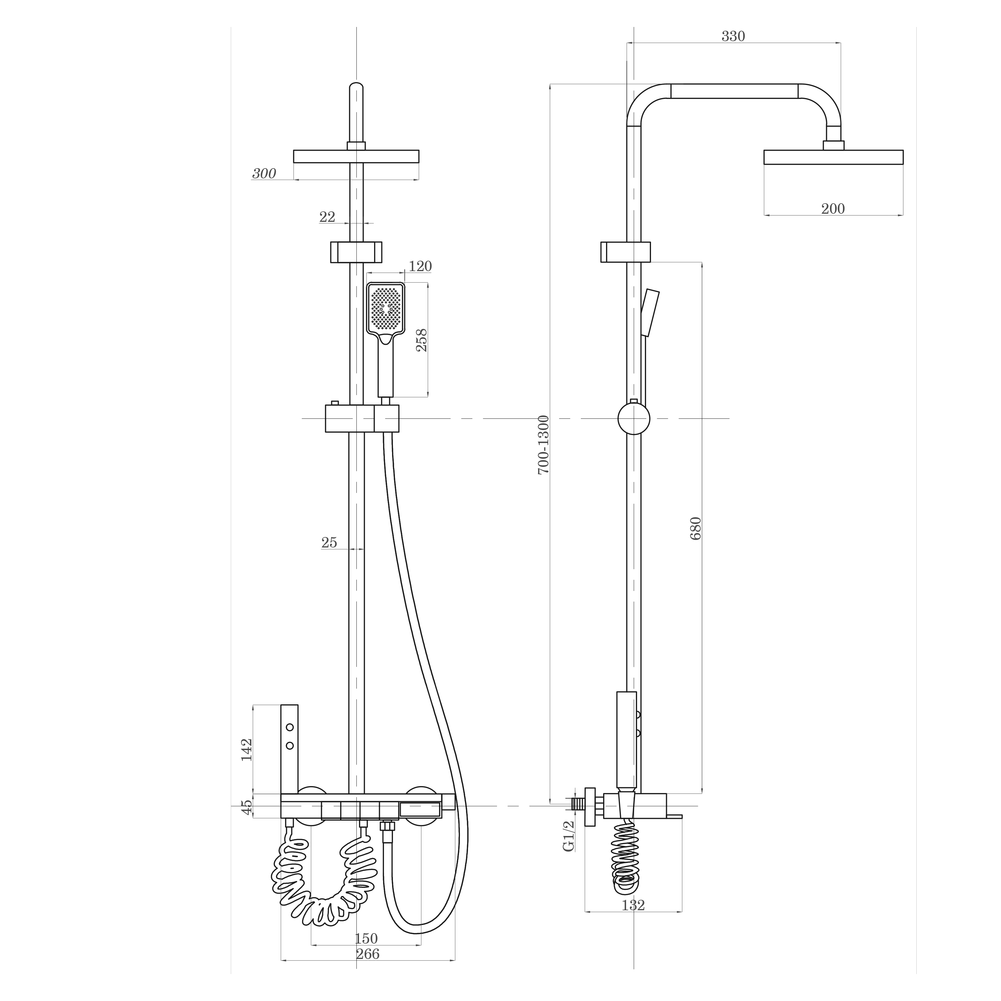 Душевая система ПРОФСАН ПСМ-900-83GA многофункциональная и может работать в 4 режимах: верхний тропический душ, ручная лейка, гигиенический душ, излив. Удобное управление с помощью клавиш, многорежимность, цифровое табло и стильный внешний вид отлично подходят для современных интерьеров в стиле хай-тек. Авиационный алюминий делает изделие прочным и надежным, благодаря своим свойствам.Модель четырехпозиционная, что означает возможность функционирования в 4 режимах: верхний душ, лейка на гибком шланге, гигиеническая лейка, излив.Тропический душ в модели ПРОФСАН ПСМ-900-83GA обеспечен прямоугольной лейкой с большой шириной охвата.Ручная лейка имеет современную квадратную форму и работает в нескольких режимах. Переключение режимов обеспечит необходимый формат потока воды. Ручной душ связан с корпусом гладким шлангом в тон изделию.Лейка гигиенического душа имеет цилиндрическую форму и крепится на корпус слева. Ее можно извлечь из держателя для использования в гигиенических целях и отвести на расстояние, допустимое шлангом. Шланг в исходном положении имеет форму спирали, что позволяет ему быть максимально компактным в состоянии покоя и растягиваться на нужную длину при использовании.Душевая система оснащена статичным изливом. Благодаря ему, можно направить поток воды в ванную или просто в пол в душевой кабине. Излив находится в нижней части блока управления слева, рядом с гигиенической лейкой.Клавишное управление обеспечивает моментальное переключение режимов. Над каждой клавишей нанесен рисунок, указывающий на режим.Индикация температуры отображается на цифровом табло в правой части корпуса. Это позволит настроить температурный режим максимально точно и всегда знать конкретное значение в градусах цельсия.Смена температуры воды происходит путем вращения цилиндрической ручки справа от корпуса. На рычаге индикация холодной и горячей воды имеет цветовое указание на красный и синий цвет.Душевая система PSM-900-83GA выполнена из авиаля (авиационный алюминий). Это сплав алюминия с добавлением различных элементов, таких как магний, марганец, кремний, цинк и прочие. Добавки значительно улучшают характеристики алюминия, делая его более прочным, стойким к коррозии и способным выдерживать высокие и низкие температуры.Современный металлически-серый цвет графит отлично смотрится в различных дизайнах.