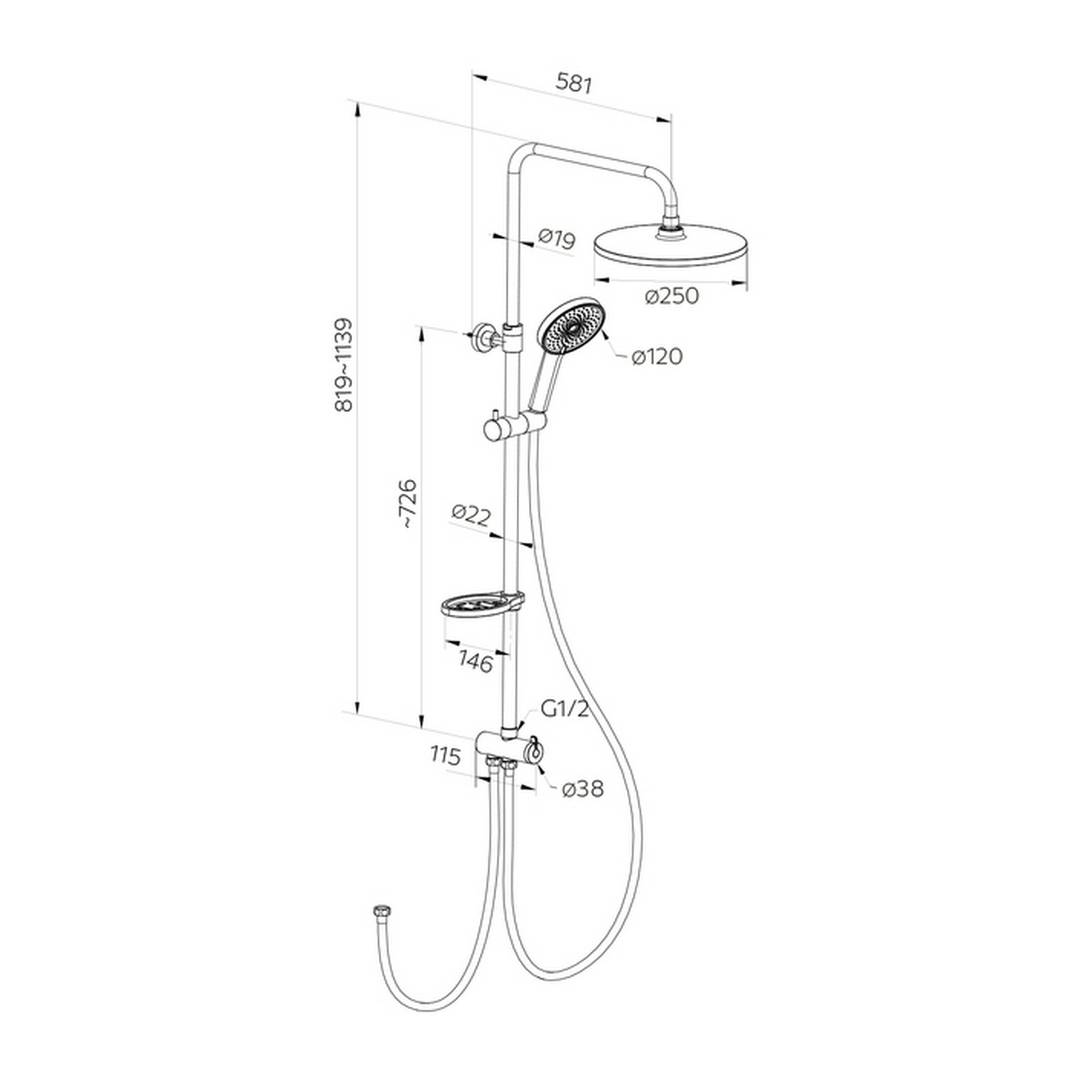 Душевой гарнитур Milardo ILSSB3FM76 "Ideal Spa" 819-1139мм, Тропич. душ,лейка д/душа, мыльница,ХРОМ