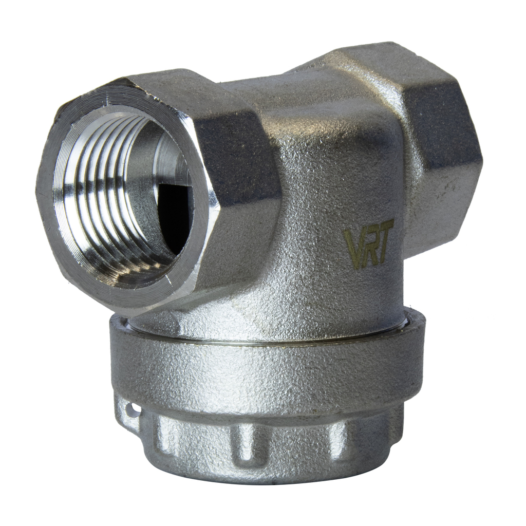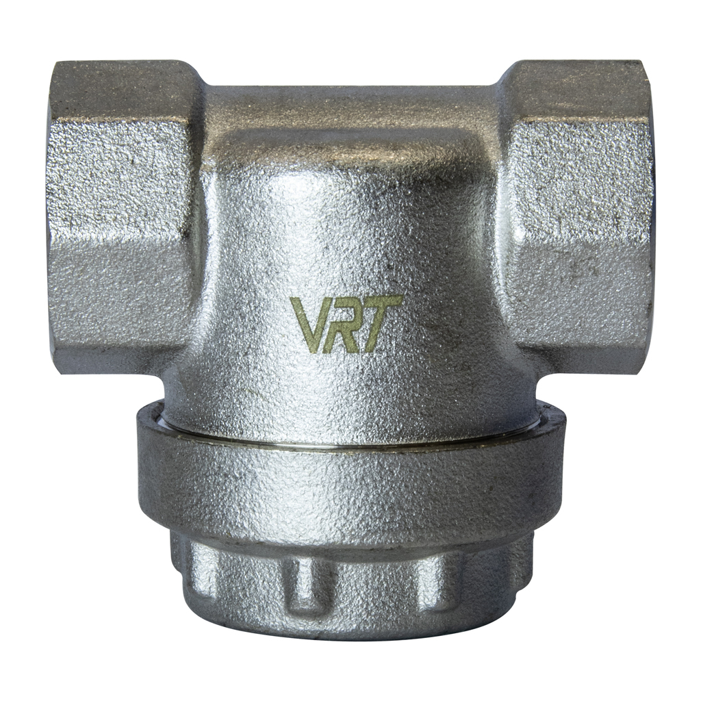 Универсальный фильтр VRT - это устройство предназначено для первичной механической очистки воды и теплоносителя, обеспечивая защиту бытовой техники и сантехнического оборудования в различных системах.Фильтр VRT эффективно задерживает механические примеси, такие как песок, окалина, ржавчина и другие абразивные частицы. Его универсальность позволяет применять его в системах холодного и горячего водоснабжения, а также в контурах отопления.Ключевые особенности:- Широкая сфера применения: Одна модель для защиты стиральных и посудомоечных машин, водонагревателей, котлов, циркуляционных насосов и смесителей.- Высокие эксплуатационные характеристики: Увеличенные показатели стойкости к давлению (16 бар) и температуре (110 °C) гарантируют надежность в самых разных условиях.- Качественная фильтрация: Фильтрующий элемент из нержавеющей стали AISI 304 с размером ячейки 500 мкм обеспечивает высокую степень очистки.- Долгий срок службы: Никелированное латунное исполнение корпуса обеспечивает коррозионную стойкость и прочность.Его особенностью является то, что поток при входе в фильтроэлемент поворачивается на 90°, создавая турбулентный вихрь, омывающий сетку, что способствует более эффективной очистке и препятствует нарастанию шлама на сетке.Данный тип фильтров допускается устанавливать только на горизонтальных участках системы фильтрующим элементом вниз.Технические характеристики:Максимальное рабочее давление: 16 барМаксимальная рабочая температура: 110 °СРазмер присоединения: 1/2Материал корпуса: никелированная латунь Материал фильтрующего элемента: нержавеющая сталь AISI 304Размер ячейки фильтрующего элемента: 500 мкмТип резьбы: внутренняя / внутренняя