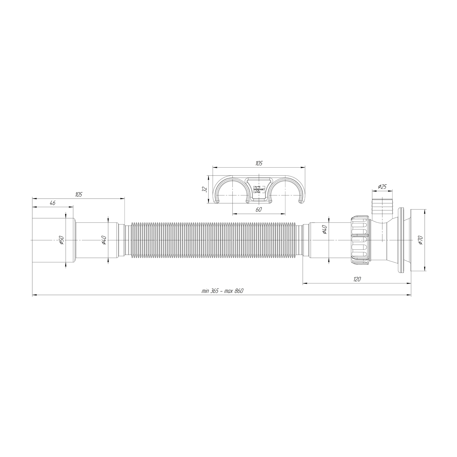 Гофросифон 1 1/2"*40*50 (800мм) GS7080 ИНКОПЛАСТ (винт М6*80)