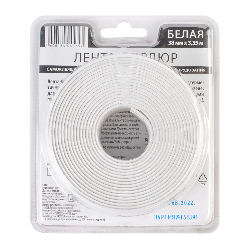 Лента бордюрная самоклеящаяся Аккурат 38мм*3,35м БЕЛАЯ