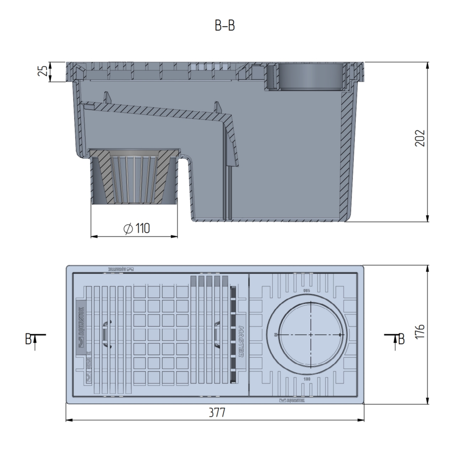 Ливнеприемник кровельный Master — это инновационное решение для сбора и отвода воды не только с кровли, но и с прилегающей территории! Уникальный и не имеющий аналогов - объединяет в себе лучшие свойства дождеприемника и ливнеприемника. Созданный из премиального композитного полипропилена, ливнеприемник Master обеспечивает высокую прочность и долговечность, благодаря использованию первичного сырья, что гарантирует отсутствие переработанного пластика в его составе. Уникальная конструкция этого продукта не имеет аналогов на рынке, что делает его идеальным выбором для вашего дома.Уникальные преимущества:Сочетание свойств ливнеприёмника и дождеприёмника – Два в Одном:Вместо крышки, ливнеприемник Master оснащен усиленной пластиковой решеткой толщиной 22 мм, что позволяет ему не только собирать воду с кровли, но и эффективно улавливать воду с поверхности прилегающей территории, функционируя как полноценный дождеприемник.Увеличенная пропускная способность:Объем ливнеприемника Master больше, чем у стандартных моделей, что позволяет ему эффективно справляться с большими объемами дождевой и талой воды.Премиальный материал:Изготовлен из первичного композитного полипропилена, этот ливнеприемник отличается высокой устойчивостью к воздействию внешней среды и долговечностью, что делает его надежным выбором для вашего дома.