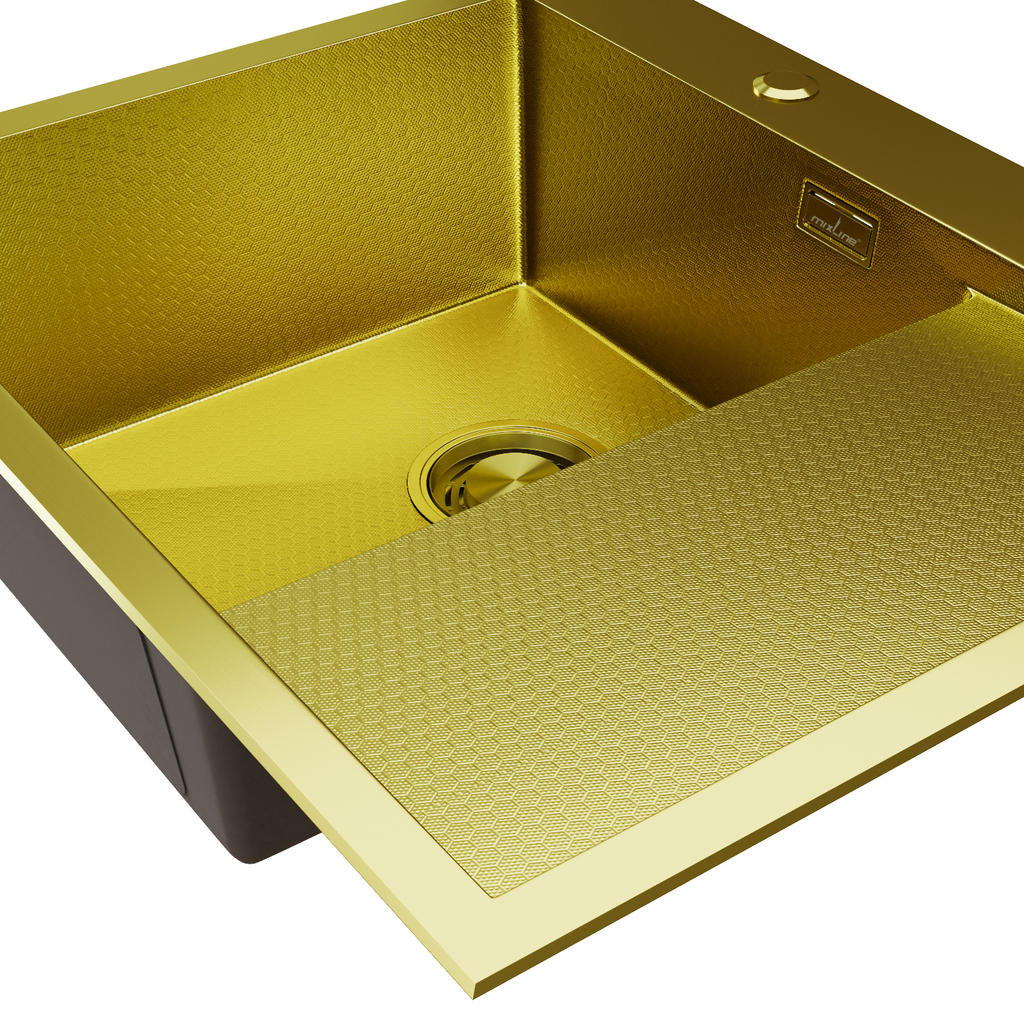 Кухонная мойка из нержавеющей стали MIXLINE ПРО - практичный вариант для современной кухни.Отличительной особенностью мойки MIXLINE ПРО является плоский кант, который не выступает на поверхности столешницы, что придает аккуратный и эстетичный вид всей зоне мойки.Мойка кухонная имеет хорошую глубину - 200 мм и увеличенную толщину стали до 3 мм.Самый важный показатель мойки из нержавеющей стали - толщина стали. Чем она толще, тем надежнее и долговечнее будет мойка.Кухонная мойка MIXLINE ПРО изготовлена сварным способом. Такой метод производства позволяет изготовить мойку с увеличенной глубиной чаши и более четкими гранями. При изготовлении врезной кухонной мойки используется качественная нержавеющая сталь, которая придаёт изделию отличные прочностные свойства, устойчивость к окислению и к повышенной температуре. Кухонная мойка имеет PVD-покрытие, которое получают путём нанесения металла, доведенного до парообразного состояния при высокой температуре в камере под вакуумом, на поверхность мойки.PVD-покрытие уникально тем, что парообразный металл впитывается в поверхность мойки на молекулярном уровне и образует микрослой на поверхности.Это защитит от отслоения покрытия при сильном механическом воздействии на мойку или ударе. Царапины не оставят явного визуального следа, так как царапина будет иметь тот же цвет, что и изделие.Мойка имеет защиту от кислотосодержащих составов. Поверхность не изменится по фактуре, так как PVD покрытие надежно соединилось с кристаллической решёткой изделия.Еще одним преимуществом моек MIXLINE ПРО является наличие шумоподавляющего покрытия, которое состоит из двух компонентов: резиновой накладки на дне и специального противошумного состава.Ухаживать за мойками из нержавеющей стали легко. Понадобятся только губка и стандартное моющее средство. Но если у вас жесткая вода, то целесообразно дополнительно использовать противоизвестковые средства.К этим мойкам можно выбрать любой смеситель на свой вкус.Мойки врезные для кухни MIXLINE ПРО особо износостойкие, прочные и противоаллергенные.Благодаря современному дизайну и отличным эксплуатационным характеристикам эти мойки будут радовать вас долгие годы.Гарантия на мойки MIXLINE ПРО - 5 лет.Плановый срок службы - 35 лет.Обращаем внимание, что цвет товара на изображении может незначительно отличаться от реального вида из-за особенностей цветопередачи экранов различных устройств.
