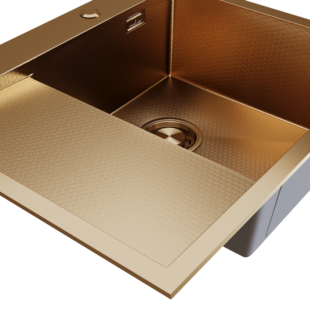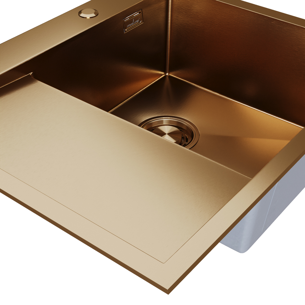 Кухонная мойка из нержавеющей стали MIXLINE ПРО - практичный вариант для современной кухни.Отличительной особенностью мойки MIXLINE ПРО является плоский кант, который не выступает на поверхности столешницы, что придает аккуратный и эстетичный вид всей зоне мойки.Мойка кухонная имеет хорошую глубину - 200 мм и увеличенную толщину стали до 3 мм.Самый важный показатель мойки из нержавеющей стали - толщина стали. Чем она толще, тем надежнее и долговечнее будет мойка.Кухонная мойка MIXLINE ПРО изготовлена сварным способом. Такой метод производства позволяет изготовить мойку с увеличенной глубиной чаши и более четкими гранями. При изготовлении врезной кухонной мойки используется качественная нержавеющая сталь, которая придаёт изделию отличные прочностные свойства, устойчивость к окислению и к повышенной температуре. Кухонная мойка имеет PVD-покрытие, которое получают путём нанесения металла, доведенного до парообразного состояния при высокой температуре в камере под вакуумом, на поверхность мойки.PVD-покрытие уникально тем, что парообразный металл впитывается в поверхность мойки на молекулярном уровне и образует микрослой на поверхности.Это защитит от отслоения покрытия при сильном механическом воздействии на мойку или ударе. Царапины не оставят явного визуального следа, так как царапина будет иметь тот же цвет, что и изделие.Мойка имеет защиту от кислотосодержащих составов. Поверхность не изменится по фактуре, так как PVD покрытие надежно соединилось с кристаллической решёткой изделия.Еще одним преимуществом моек MIXLINE ПРО является наличие шумоподавляющего покрытия, которое состоит из двух компонентов: резиновой накладки на дне и специального противошумного состава.Ухаживать за мойками из нержавеющей стали легко. Понадобятся только губка и стандартное моющее средство. Но если у вас жесткая вода, то целесообразно дополнительно использовать противоизвестковые средства.К этим мойкам можно выбрать любой смеситель на свой вкус.Мойки врезные для кухни MIXLINE ПРО особо износостойкие, прочные и противоаллергенные.Благодаря современному дизайну и отличным эксплуатационным характеристикам эти мойки будут радовать вас долгие годы.Гарантия на мойки MIXLINE ПРО - 5 лет.Плановый срок службы - 35 лет.Обращаем внимание, что цвет товара на изображении может незначительно отличаться от реального вида из-за особенностей цветопередачи экранов различных устройств.