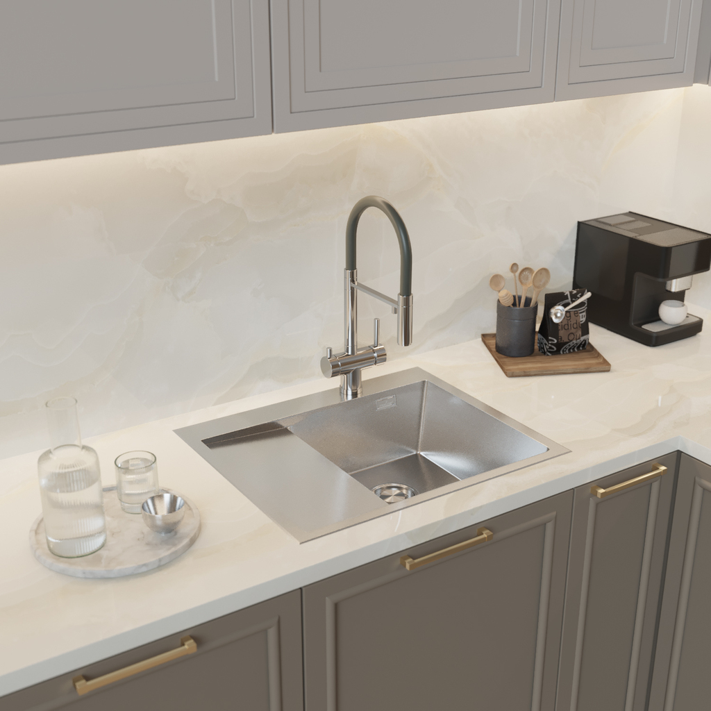 Мойка кухонная врезная из нержавеющей стали Mixline Pro выполнена в классическом стиле, что позволяет удачно вписать модель в современный кухонный интерьер. Отличительной особенностью мойки для кухни Mixline Pro является плоский кант, который не выступает на поверхности столешницы, что придает аккуратный и эстетичный вид всей зоне мойки.Мойка кухонная имеет хорошую глубину - от 200 мм и увеличенную толщину стали до 3 мм. Самый важный показатель мойки из нержавеющей стали - толщина стали. Чем она толще, тем надежнее и долговечнее будет мойка. Кухонная мойка Mixline Pro изготовлена сварным способом. Такой метод производства позволяет изготовить мойку с увеличенной глубиной чаши и более четкими гранями. При изготовлении врезной кухонной мойки используется качественная нержавеющая сталь, которая придаёт изделию отличные прочностные свойства, устойчивость к окислению и к повышенной температуре. Гарантия на мойки Mixline Pro - 5 лет.Кухонная мойка имеет PVD-покрытие, которое получают путём нанесения металла, доведенного до парообразного состояния при высокой температуре в камере под вакуумом, на поверхность мойки. PVD-покрытие уникально тем, что парообразный металл впитывается в поверхность мойки на молекулярном уровне и образует микрослой на поверхности. Это защитит от отслоения покрытия при сильном механическом воздействии на мойку или ударе. Царапины не оставят явного визуального следа, так как царапина будет иметь тот же цвет, что и изделие.Мойка имеет защиту от кислотосодержащих составов. Поверхность не изменится по фактуре, так как PVD покрытие надежно соединилось с кристаллической решёткой изделия.Еще одним преимуществом моек Mixline Pro является наличие шумоподавляющего покрытия, которое состоит из двух компонентов: резиновой накладки на дне и специального противошумного состава.Мойку на кухню Mixline Pro можно установить настольным способом монтажа.Ухаживать за мойками из нержавеющей стали легко. Понадобятся только губка и стандартное моющее средство. Но если у вас жесткая вода, то целесообразно дополнительно использовать противоизвестковые средства.К этим мойкам можно выбрать любой смеситель на свой вкус.Мойки врезные для кухни Mixline Pro особо износостойкие, прочные и противоаллергенные. Благодаря современному дизайну и отличным эксплуатационным характеристикам эти мойки будут радовать вас долгие годы. Плановый срок службы - 35 лет.Обращаем внимание, что цвет товара на изображении может незначительно отличаться от реального вида из-за особенностей цветопередачи экранов различных устройств.