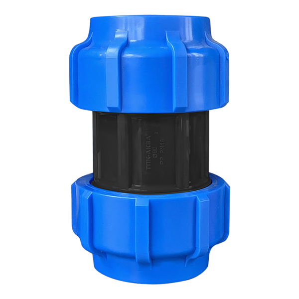 Муфта компрессионная соединительная предназначена для обеспечения надежного соединения двух полиэтиленовых труб равного диаметра между собой при строительстве систем питьевого или технического водопровода, систем безнапорной канализации, для устройства кабельных каналов из ПНД труб.Соединительные детали компрессионного типа ТПК-АКВА из полипропилена применяются для соединения полиэтиленовых труб номинальным диаметром от 20 до 110 мм, предназначенные для транспортирования воды с температурой до 40 °C и максимальным рабочим давлением 1,6 МПа в системах хозяйственно-питьевого водоснабжения, а также для транспортирования других жидких и сред, к которым материал фитингов и их уплотнительных элементов химически стоек.