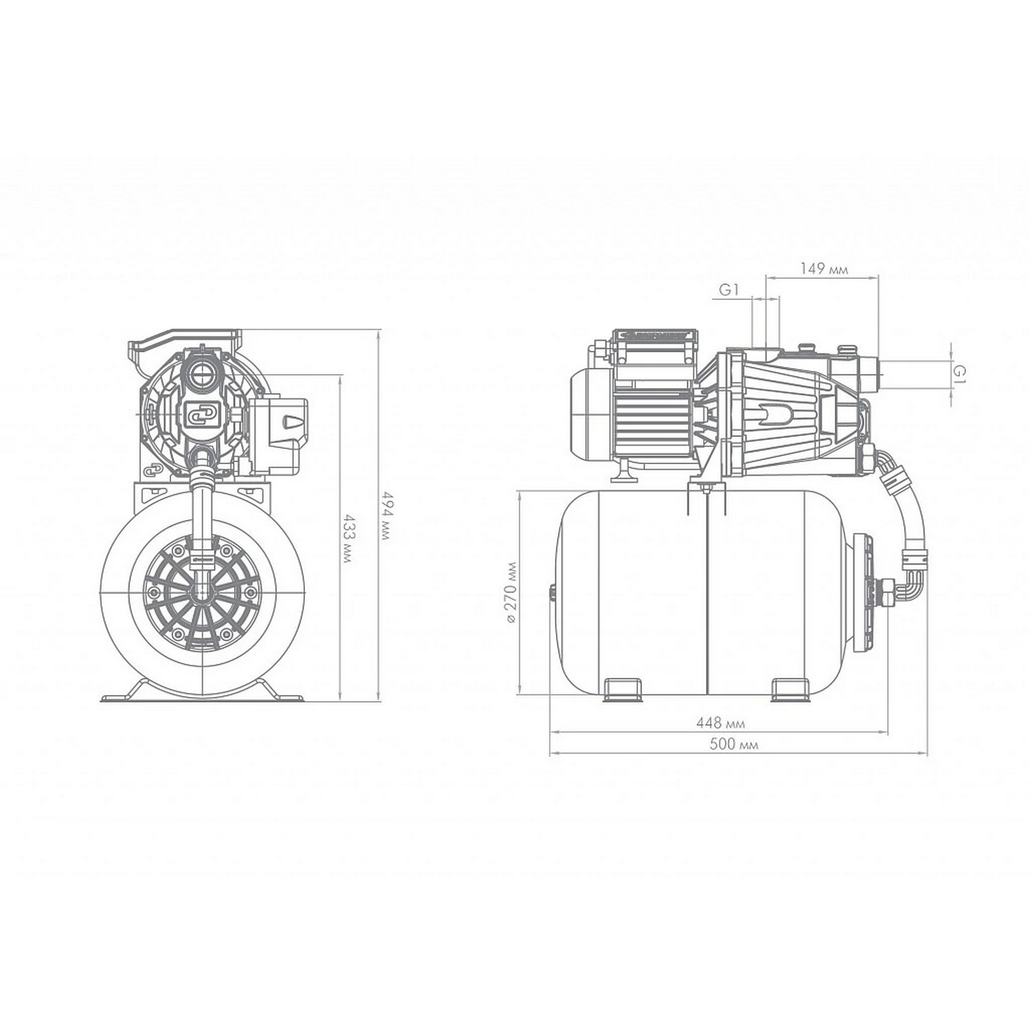 Насосная станция «ДЖАМБО» 60/35 Ч-24 создана для автоматизированной подачи чистой воды из разных источников, также может быть использована для повышения давления при использовании в качестве источника магистрального водопровода.Область примененияНасосную станцию можно использовать как часть системы автоматического водоснабжения в частном доме. Забор воды может осуществляться из:открытых водоемов;колодцев и скважин;централизованного водопровода.Характеристики модели «ДЖАМБО» 60/35 Ч-24«ДЖАМБО» — название серии;60 — максимальный расход воды при свободном изливе в л/мин;35 — максимальный напор в метрах водяного столба;Ч — материал, из которого изготовлен корпус (чугун);24 — объем гидроаккумулятора в литрах.Преимущества модели «ДЖАМБО» 60/35 Ч-24Наличие заливного отверстия и отверстия для выхода воздуха с резьбововыми заглушками позволяет быстро заполнить водой насосную часть и избежать образование воздушных пробок, что облегчает первоначальный запуск насоса. В процессе залива вода сразу попадает в диффузор, корпус и всасывающую магистраль.Заменена соединительная арматура между насосом и гидроаккумулятором на шланг из сшитого полиэтилена с накидными гайками. Облегчает монтаж и замену гидроаккумулятора. Новая конструкция гидравлической части снижает риск возникновения воздушных пробок при работе.Наличие гидроаккумулятора позволяет защитить насос от частых пусков, тем самым увеличивая его срок службы. Он же позволяет поддерживать давление в системе, что обеспечивает бесперебойное водоснабжение потребителей в тот момент, когда насос отключается. Кроме поддержания давления в системе водоснабжения гидроаккумулятор позволяет предотвратить гидроудар.Встроенная тепловая защита. Функцию защиты от перегрева выполняет термопротектор, находящийся в обмотках статора. Как только температура обмоток повышается - электродвигатель отключается.