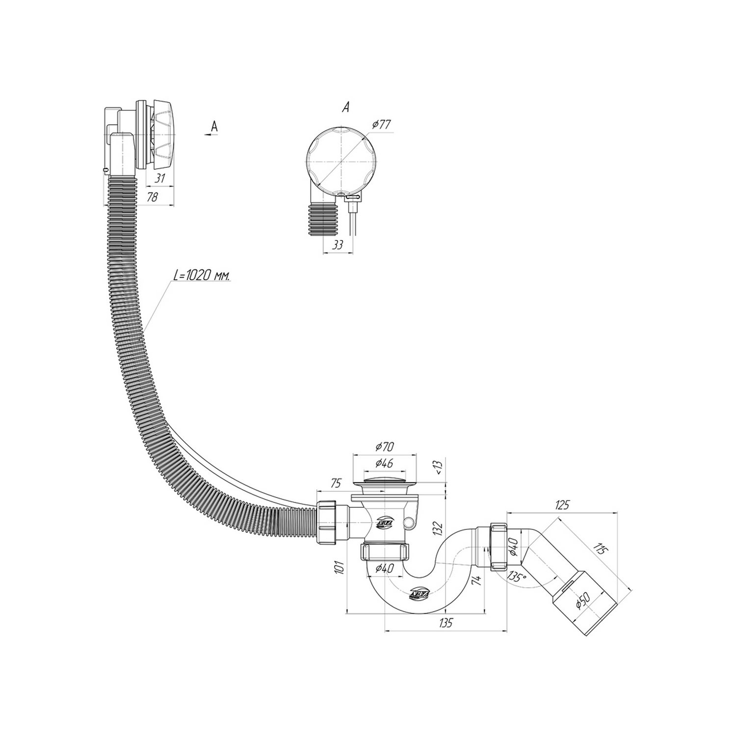 Сифон сливной прямоточный АНИ пласт EM313 для ванны полуавтомат с переливом комплектуется переходной трубкой 45 градусов 40х50 мм. Подходит для ванн с отверстием слива D 50-54 мм и отверстием перелива от 48 до 56 мм (стандартное отверстие 50 мм). Так же подходит для ванн толщиной до 15 мм, в том числе для чугунных производства СССР (толщина 7-10 мм).Пропускная способность: 0,4 л/сек.Обвязка полуавтомат для ванны АНИ Пласт EM313 применяется для организации слива воды в систему канализации в ванне, а также ее заполнения. Представляет собой полуавтоматическую конструкцию, которая закрывает сливное отверстие в ванне, а также отверстие для перелива. Закрытие и открытие сливного отверстия происходит с помощью вращающейся крышки из нержавеющей стали диаметром 77 мм на отверстии перелива. Максимальная длина гофрированной трубы перелива 1080 мм. Пробка обвязки для ванны выполнена из нержавеющей стали диаметром 43 мм. Обвязка изготовлена из пропилена, сифон прямоточный с жесткой трубой, выход на канализацию можно организовать с помощью переходной трубки под углом 45 градусов и диаметром 40-50 мм.Комплектация: сифон с выпуском и переливом, переходная труба 45 гр. 40х50мм, упаковка.Компания "АНИ пласт" является российским производителем водосливной арматуры.Высокие требования при выборе сырья, строжайшее соблюдение технологии производства позволяет компании давать гарантию 10 лет на всю выпускаемую продукцию.Вся продукция изготовлена из высококачественного полипропилена и укомплектована необходимыми для сборки элементами. Комплектующие также произведены из современных материалов: сливные решетки - из нержавеющей стали, винты - из хромированной латуни, плоские или конические прокладки - из пластиката. Каждое изделие имеет индивидуальную упаковку из полиэтилена. Продукция упаковывается в фирменные коробки из гофрокартона с индивидуальной этикеткой, на которой указана необходимая информация. Коробки снабжены перфорацией, позволяющей вынимать изделия из коробки, не открывая ее.Компания "АНИ пласт" - лидер в сегменте недорогой и качественной сантехники.