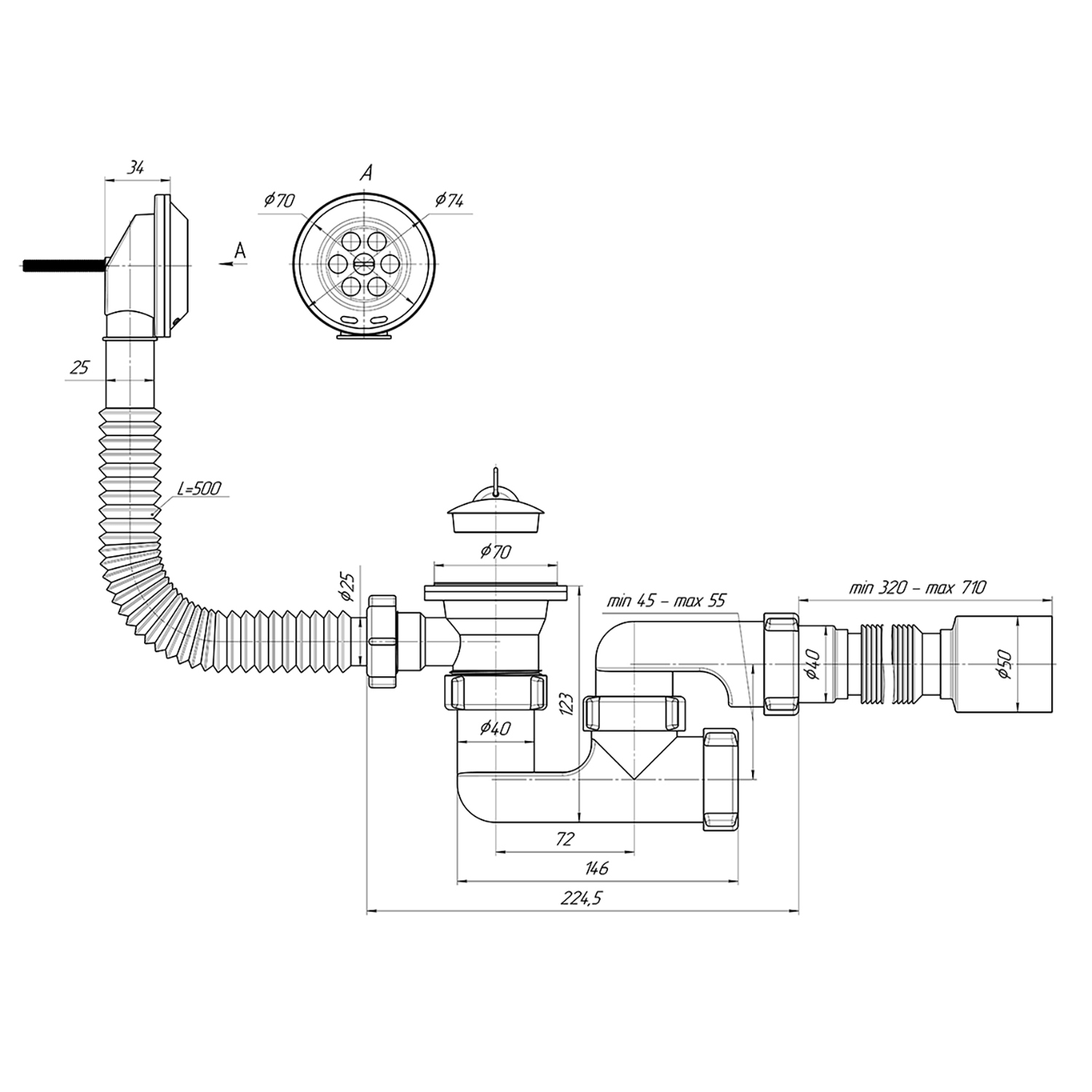 Подключение к канализации, мм