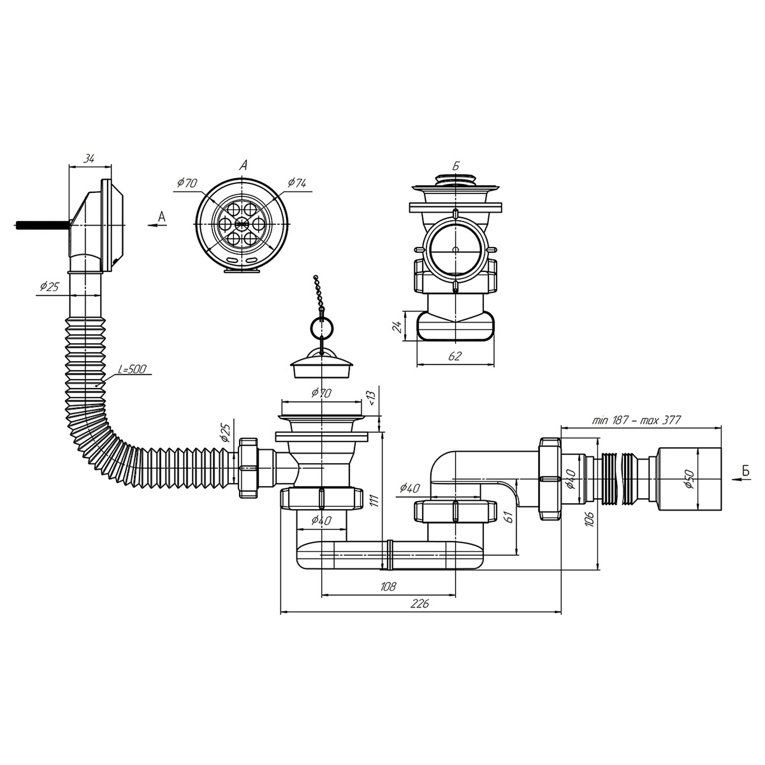 Сифон E055 АНИ пласт для ванны с решеткой слива D 70мм и выпуском 1 1/2 комплектуется гибкой трубкой 40*50 мм для отвода в канализацию.Подходит для ванн с отверстием слива D 50 мм и отверстием перелива от 36 до 63 мм (стандартное отверстие 50 мм). Так же подходит для ванн толщиной до 20 мм, в том числе для чугунных производства СССР (толщина 7-10 мм).Пропускная способность: 24 л/мин.Форма сифона позволяет поддерживать хорошую пропускную способность слива сточной воды, выполняя свою главную функцию - формирование гидрозатвора для отсечения неприятных запахов из канализации.Комплектация: сифон с выпуском и переливом, гофротруба 40х50 мм.Компания "АНИ пласт" является российским производителем водосливной арматуры.Высокие требования при выборе сырья, строжайшее соблюдение технологии производства позволяет компании давать гарантию 10 лет на всю выпускаемую продукцию.Вся продукция изготовлена из высококачественного полипропилена и укомплектована необходимыми для сборки элементами. Комплектующие также произведены из современных материалов: сливные решетки - из нержавеющей стали, винты - из хромированной латуни, плоские или конические прокладки - из пластиката. Каждое изделие имеет индивидуальную упаковку из полиэтилена. Продукция упаковывается в фирменные коробки из гофрокартона с индивидуальной этикеткой, на которой указана необходимая информация. Коробки снабжены перфорацией, позволяющей вынимать изделия из коробки, не открывая ее.Компания "АНИ пласт" - лидер в сегменте недорогой и качественной сантехники.