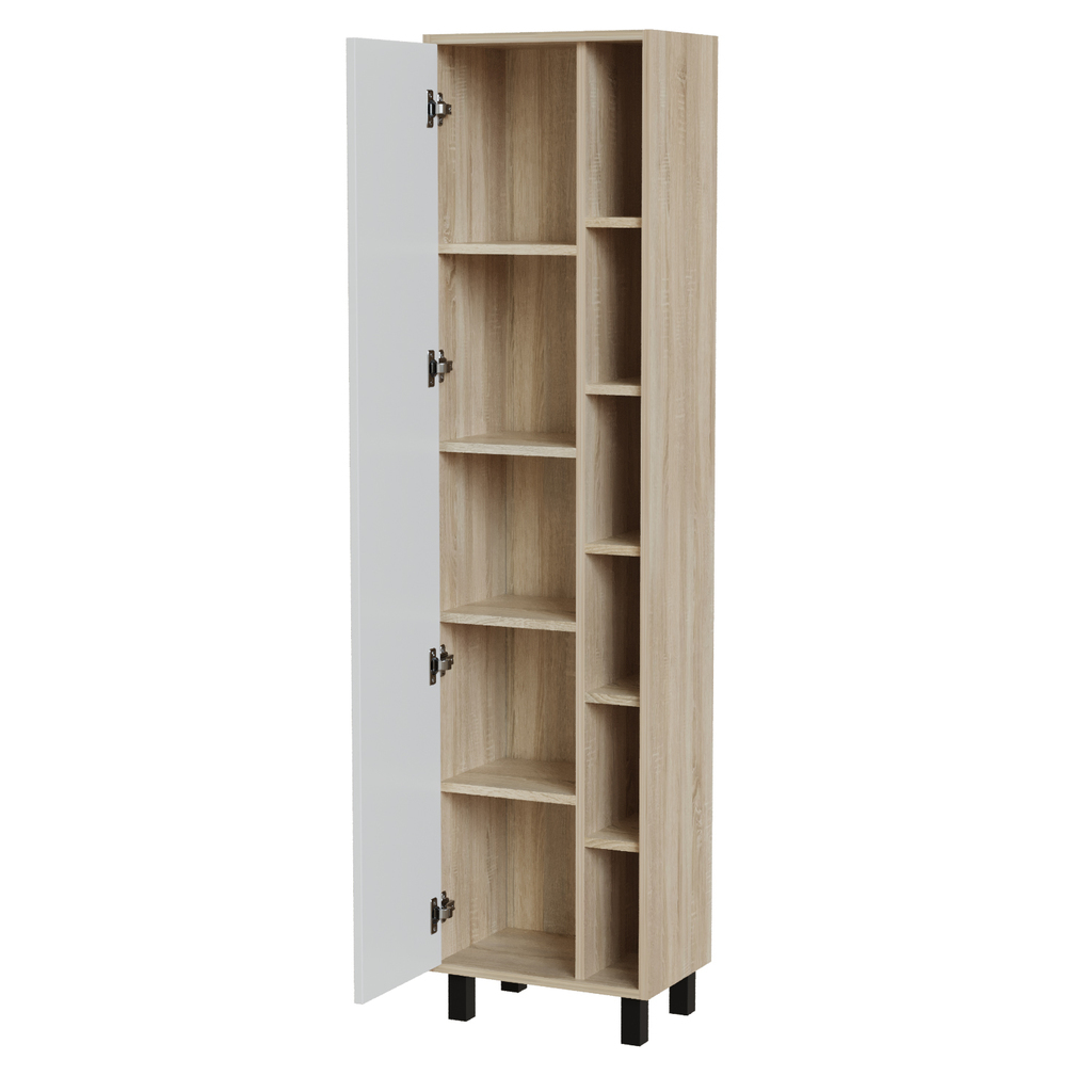 Серия "МИЛТОН" - это идеальный выбор для тех, кто ценит сочетание стиля и практичности. Коллекция отличается сочетанием классической отделкой под дерево и нейтральным белым цветом, что позволяет ей гармонично вписаться в интерьер ванной комнаты, подчеркивая его современный характер.Преимущества серии:- Современный дизайн с двухцветными фасадами: элегантное сочетание белого и дуба сонома.- Продуманная организация: открытые ниши для легкого доступа к самым нужным вещам.- Увеличенная ширина пенала до 50см: дает еще больше места для хранения ваших вещейНапольнаый пенал с распашной дверцей и открытыми нишами для хранения. Внутри 4 полки из ЛДСП. Петли на дверце оснащены доводчиками. Дверца пенала изготовлена из МДФ и облицована белой матовй пленкой ПВХ белый софт. Корпус тумбы изготовлен из влагостойкого ЛДСП. Пенал устанавливается на четыре регулируемые опоры и фиксируется к стене при помощи креплений.