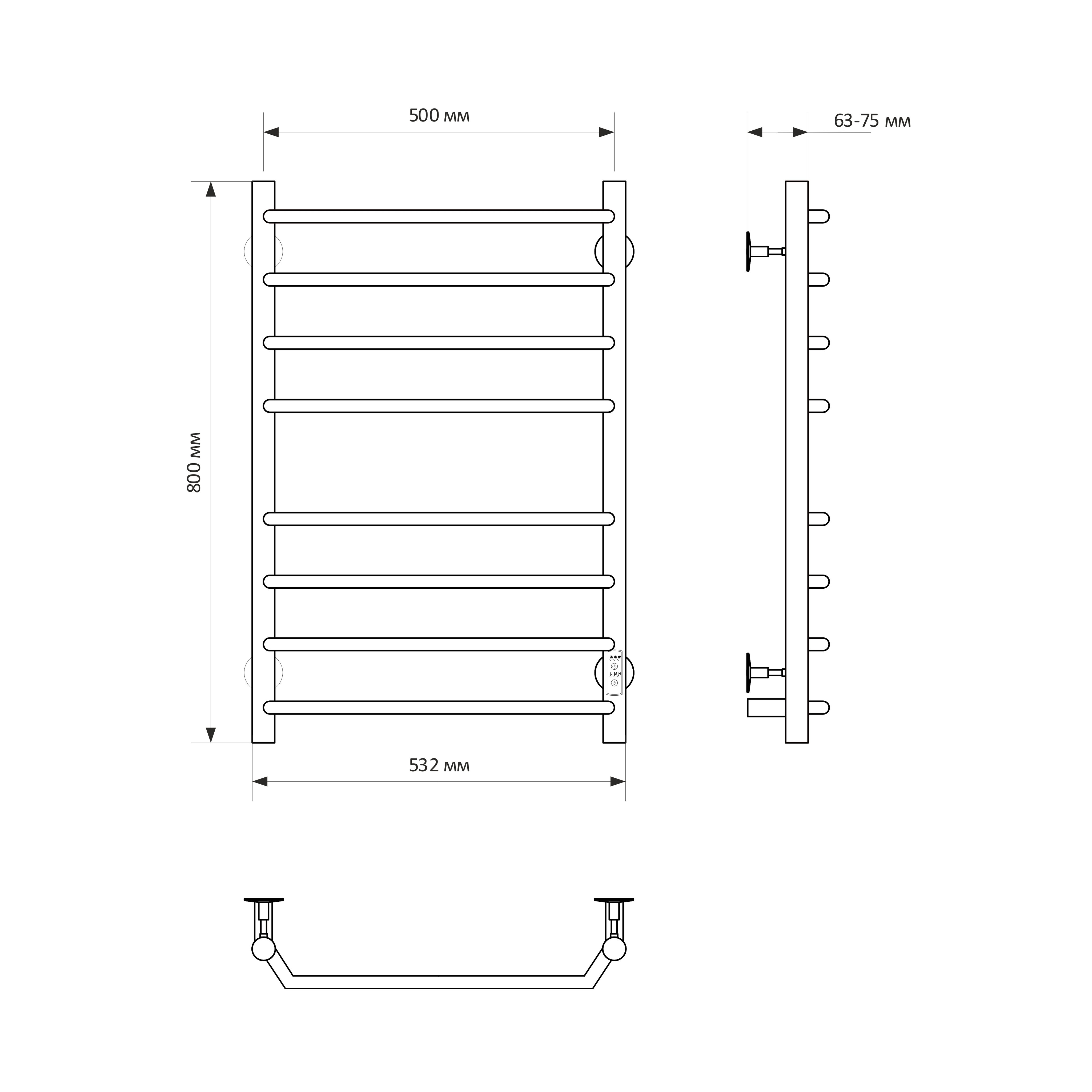 Полотенцесушители MIXLINE MIRA - отличаются современным исполнением, доступной ценой, низким энергопотреблением и высокой теплоотдачей.Технические характеристики:Номинальное напряжение - 220 В ±10%;Номинальная частота электрического тока - 50 Гц;Температура поверхности изделия - 30 - 65 °С ± 5 °С;Время нагрева - 20-40 минут;Гарантийный срок- 2 года.Особенности модели:- возможность установки в любом месте, без привязки к водопроводу;- возможность включения и выключения прибора, когда это необходимо;- возможность регулирования мощности нагрева;- простота монтажа;- низкое потребление электроэнергии при использовании и высокая теплоотдача;- работа полотенцесушителя не зависит от сезонного выключения воды;- оснащение таймером;- полотенцесушитель покрыт порошковой эмалью, которая обеспечивает антикоррозийные свойства и защиту изделия;- 1 класс защиты от поражения электрическим током;- степень влагозащиты IPX4;- комплектация элементом скрытого монтажа для подключения изделия.Преимущества электрических полотенцесушителей Mixline:1. Продуманная комплектация: каждый полотенцесушитель поставляется в полном наборе, включая элементы скрытого монтажа и монтажный комплект. Это позволяет установить изделие быстро, аккуратно и без дополнительных затрат, облегчая поиск конечному потребителю. Этим наши модели выделяются среди конкурентов, так как не каждый бренд предоставляет готовое решение.2. Широкая цветовая линейка - ещё одно наше преимущество. Популярные оттенки, такие эксклюзивные цвета как графит и матовый хром, позволяют легко вписать полотенцесушитель в интерьер любой ванной комнаты - от современных минималистичных решений до классической отделки.Покупатели выбирают Mixline благодаря ключевым особенностям:- Оптимальная цена при высоком качестве. Мы предлагаем надёжные изделия, которые прошли полный контроль ОТК и имеют сертификат качества РФ. Это дает нам уверенность в качестве своего продукта и возможность предоставлять большой срок гарантии . Наш бренд на рынке уже более 10 лет, Mixline - выбор для тех, кто ценит надежность. - Большой выбор размеров. В ассортименте представлены модели для помещений любой площади - от компактных санузлов до просторных ванных комнат.- Актуальный дизайн. Различные формы, современные и классические модели, а также разнообразие цветов позволяют найти решение под любой стиль интерьера.