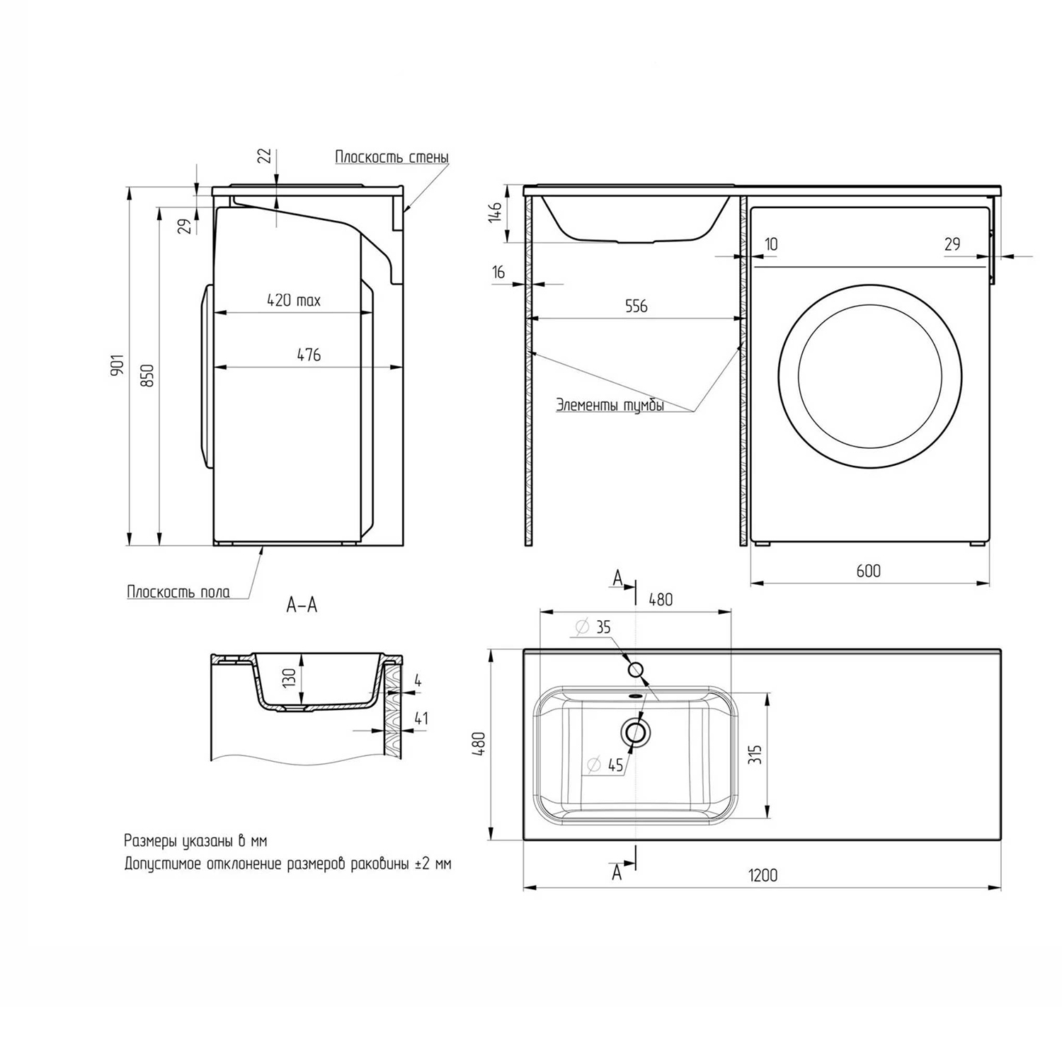 Установка над стиральной машиной