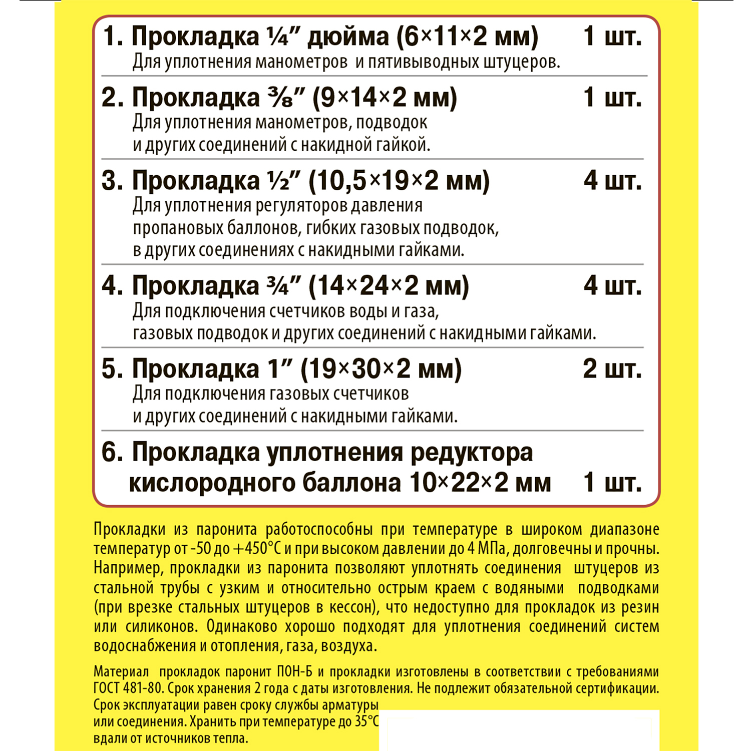 Набор дюймовых паронитовых прокладок 1/4”- 1”.Одинаково хорошо подходят для уплотнения соединений систем водоснабжения и отопления, газа и воздуха.