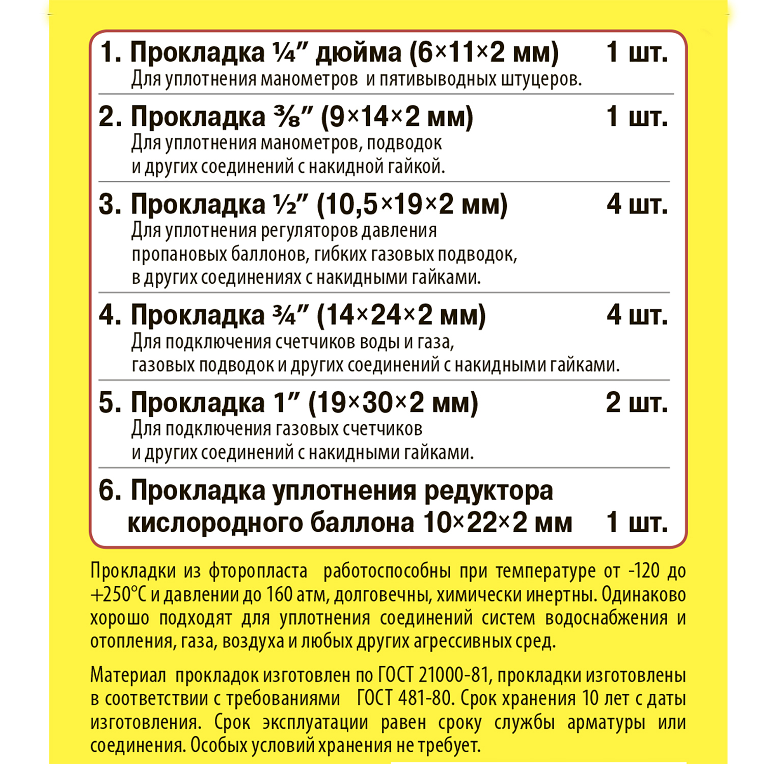 Набор дюймовых фторопластовых прокладок 1/4”- 1”.Одинаково хорошо подходят для уплотнения соединений систем водоснабжения и отопления, газа, воздуха и любых других агрессивных сред.