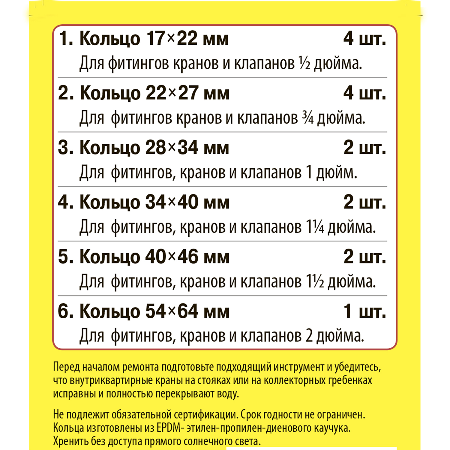 Рем.набор "Сантехник" №9 (кольца для латунных резьбовых "американок" 1/2"-2")