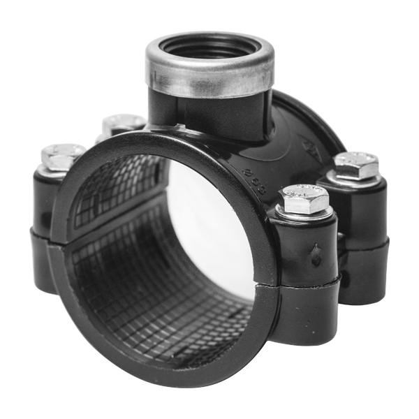 Седелка с внутренней резьбой предназначена для быстрой установки на трубу при помощи зажимных болтов. Седелки полиэтиленовые хорошо зарекомендовали себя как элементы быстрой врезки, а так же как герметичные резьбовые отводы, без разрезания трубы.