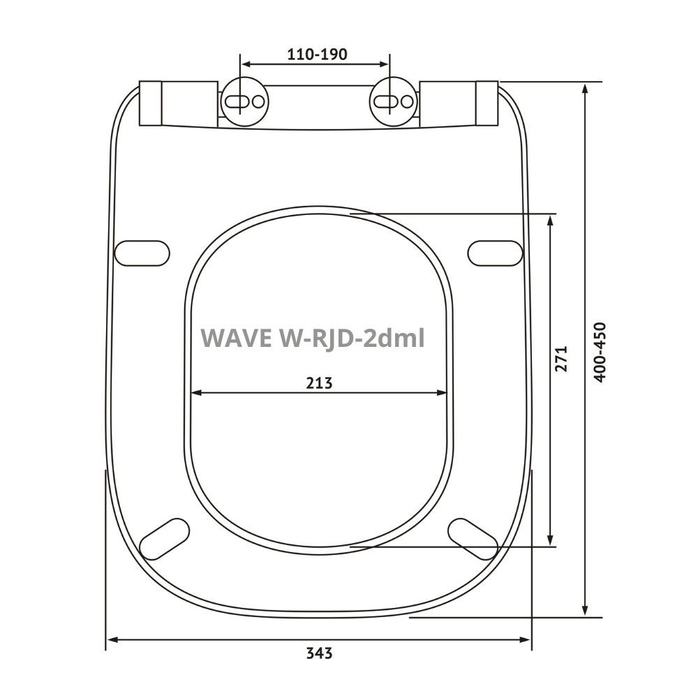 Сиденье для унитаза WAVE W-RJD-2dml изготовлено из высококачественного дюропласта — современного материала, который сочетает повышенную прочность с легкостью и простотой в уходе. Его эргономичная форма обеспечивает максимальный комфорт при каждом использовании.Ключевые преимущества:- Прочность дюропласта: Материал обладает повышенной устойчивостью к царапинам, сколам и деформациям, что гарантирует отличный вид на долгие годы.- Система микролифт (плавное опускание): Сиденье и крышка оснащены механизмом плавного, бесшумного опускания. Они закроются сами, бережно и тихо, исключая риск удара и треска.- Гладкая глянцевая поверхность белого цвета не только эффектно выглядит, но и препятствует скапливанию грязи, облегчая поддержание чистоты.Расстояние между креплениями, мм: 110-190Длина сиденья регулируется, мм: 400-450