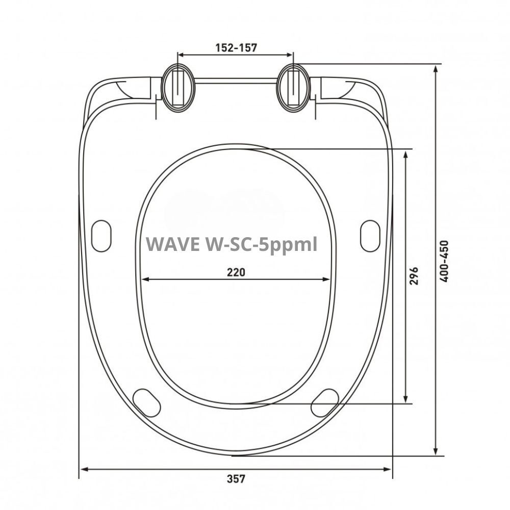Сиденье для унитаза WAVE W-SC-5ppml выполнено из прочного полипропилена. Максимально комфортное и удобное в использовании.Ключевые преимущества:- Система микролифт (плавное опускание): Сиденье и крышка оснащены механизмом плавного, бесшумного опускания. Они закроются сами, бережно и тихо, исключая риск удара и треска.- Гладкая глянцевая поверхность белого цвета не только эффектно выглядит, но и препятствует скапливанию грязи, облегчая поддержание чистоты.Расстояние между креплениями, мм: 152-157Длина сиденья регулируется, мм: 400-450