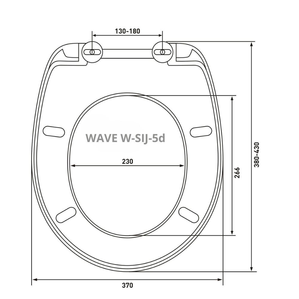 Сиденье для унитаза WAVE W-SIJ-5d изготовлено из высококачественного дюропласта — современного материала, который сочетает повышенную прочность с легкостью и простотой в уходе. Его эргономичная форма обеспечивает максимальный комфорт при каждом использовании.Ключевые преимущества:- Прочность дюропласта: Материал обладает повышенной устойчивостью к царапинам, сколам и деформациям, что гарантирует отличный вид на долгие годы.- Гладкая глянцевая поверхность белого цвета не только эффектно выглядит, но и препятствует скапливанию грязи, облегчая поддержание чистоты.Расстояние между креплениями, мм: 130-180Длина сиденья регулируется, мм: 380-430
