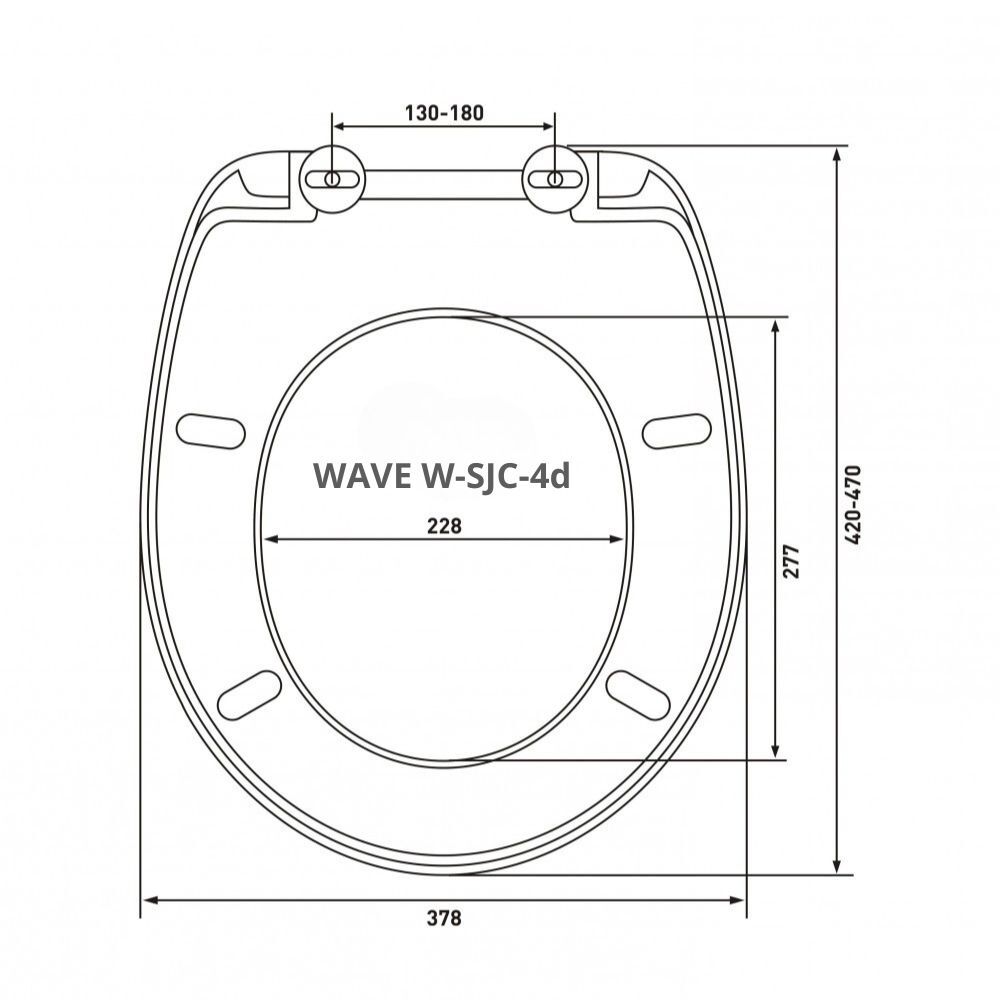 Сиденье для унитаза WAVE W-SJC-4d изготовлено из высококачественного дюропласта — современного материала, который сочетает повышенную прочность с легкостью и простотой в уходе. Его эргономичная форма обеспечивает максимальный комфорт при каждом использовании.Ключевые преимущества:- Прочность дюропласта: Материал обладает повышенной устойчивостью к царапинам, сколам и деформациям, что гарантирует отличный вид на долгие годы.- Гладкая глянцевая поверхность белого цвета не только эффектно выглядит, но и препятствует скапливанию грязи, облегчая поддержание чистоты.Расстояние между креплениями, мм: 130-180Длина сиденья регулируется, мм: 420-470