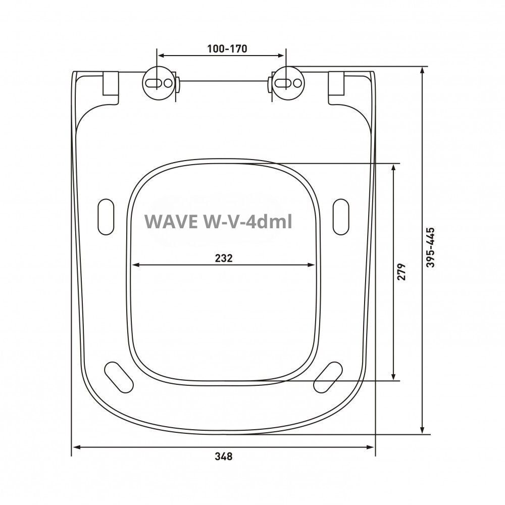 Сиденье для унитаза WAVE W-V-4dml изготовлено из высококачественного дюропласта — современного материала, который сочетает повышенную прочность с легкостью и простотой в уходе. Его эргономичная форма обеспечивает максимальный комфорт при каждом использовании.Ключевые преимущества:- Прочность дюропласта: Материал обладает повышенной устойчивостью к царапинам, сколам и деформациям, что гарантирует отличный вид на долгие годы.- Система микролифт (плавное опускание): Сиденье и крышка оснащены механизмом плавного, бесшумного опускания. Они закроются сами, бережно и тихо, исключая риск удара и треска.- Гладкая глянцевая поверхность белого цвета не только эффектно выглядит, но и препятствует скапливанию грязи, облегчая поддержание чистоты.Расстояние между креплениями, мм: 100-170Длина сиденья регулируется, мм: 395-445