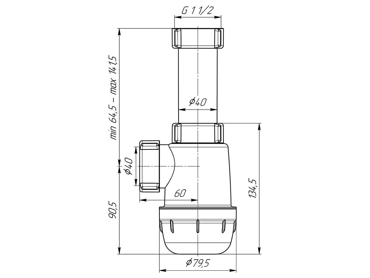 Сифон для кухонных моек бутылочного типа с увеличенным корпусом, без выпуска, выход для подключения к канализации 40мм.Форма сифона позволяет поддерживать хорошую пропускную способность слива сточной воды, выполняя свою главную функцию - формирование гидрозатвора для отсечения неприятных запахов из канализации.Конструкция позволяет легко, без демонтажа, снять отстойник (стакан) и почистить сифон в случае засорения, достать случайно упавшие в слив раковины мелкие ценные вещи.