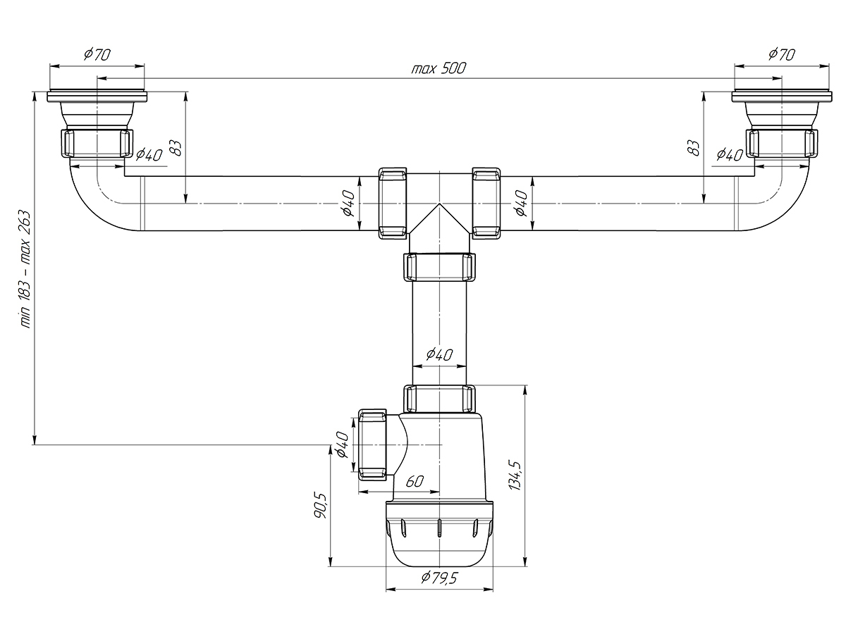 Сифон для кухонной мойки с двумя чашами и сливными отверстиями диаметром 50мм. Выход для подключения к канализации 40мм.Двойной сифон предназначен для оснащения кухонных моек с двумя чашами.Форма сифона позволяет поддерживать хорошую пропускную способность слива сточной воды, выполняя свою главную функцию - формирование гидрозатвора для отсечения неприятных запахов из канализации.Комплектация: сифон двойной, выпуск, упаковка.