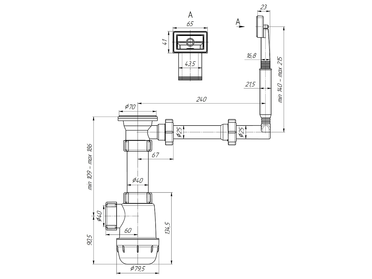 Сифон для кухонных моек с диаметром сливного отверстия 50мм, бутылочного типа с увеличенным корпусом, с разборным выпуском и нержавеющей решеткой, с жестким прямоугольным переливом для моек из нержавеющей стали. Корпус перелива оборудован универсальной прокладкой для круглых и прямоугольных моек, нужная сторона прокладки достигается путем переворота. Выход для подключения к канализации 40мм.Форма сифона позволяет поддерживать хорошую пропускную способность слива сточной воды, выполняя свою главную функцию - формирование гидрозатвора для отсечения неприятных запахов из канализации.Конструкция позволяет легко, без демонтажа, снять отстойник (стакан) и почистить сифон в случае засорения, достать случайно упавшие в слив раковины мелкие ценные вещи.