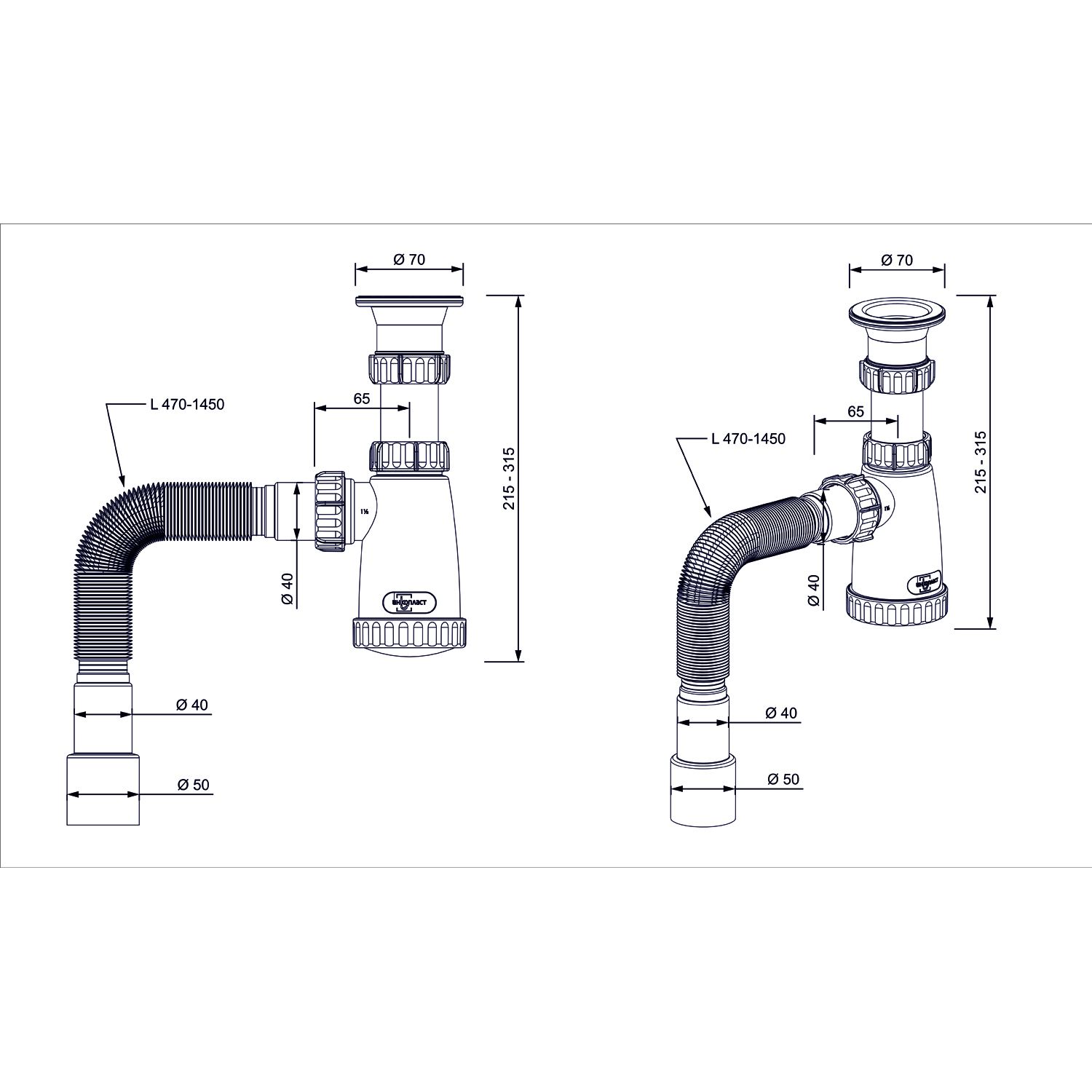 Сифон 1 1/2*40 с гофрой 40*40*50 (1450мм) BG10145 ИНКОПЛАСТ (винт М6*60)