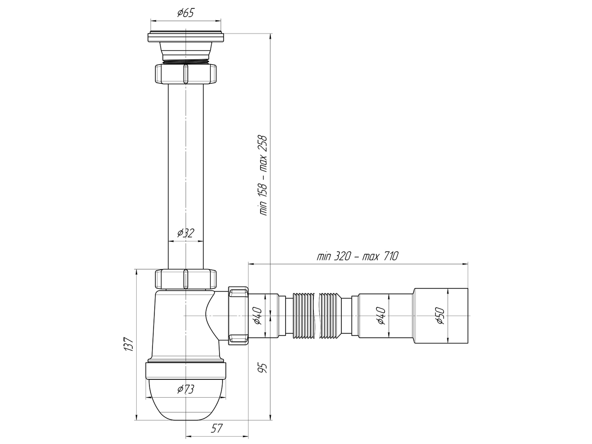 Сифон для умывальника с диаметром сливного отверстия 40-52мм, бутылочного типа, с нержавеющей решеткой 65мм. Для подключения к канализации комплектуется гибкой трубой 40*40/50мм.Форма сифона позволяет поддерживать хорошую пропускную способность слива сточной воды, выполняя свою главную функцию - формирование гидрозатвора для отсечения неприятных запахов из канализации.Конструкция позволяет легко, без демонтажа, снять отстойник (стакан) и почистить сифон в случае засорения, достать случайно упавшие в слив раковины мелкие ценные вещи.