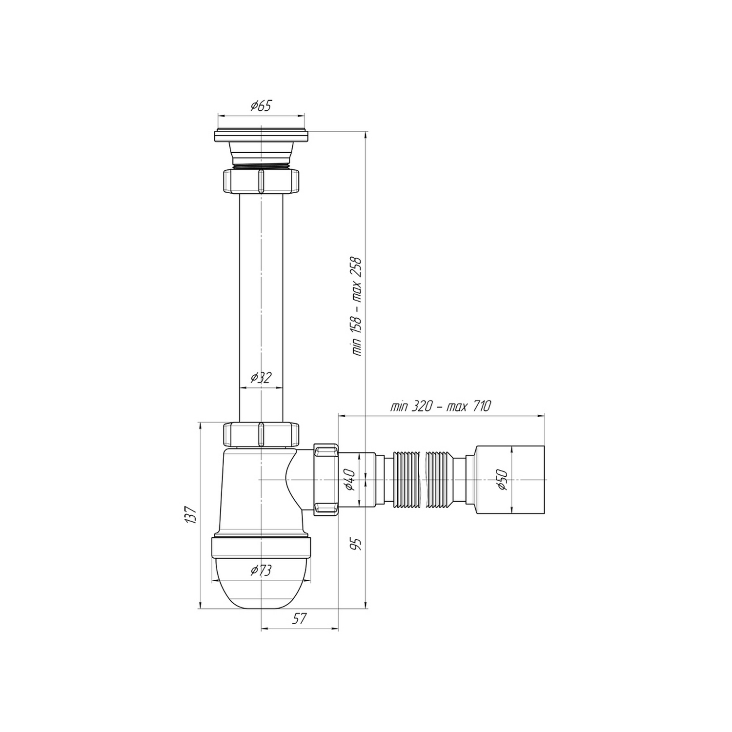 Сифон для умывальника с диаметром слива 40-52мм, бутылочного типа, с нержавеющей решеткой 65мм. Для подключения к канализации комплектуется гибкой трубой 40*50мм.Форма сифона позволяет поддерживать хорошую пропускную способность слива сточной воды, выполняя свою главную функцию - формирование гидрозатвора для отсечения неприятных запахов из канализации.Конструкция позволяет легко, без демонтажа, снять отстойник (стакан) и почистить сифон в случае засорения, достать случайно упавшие в слив раковины мелкие ценные вещи.