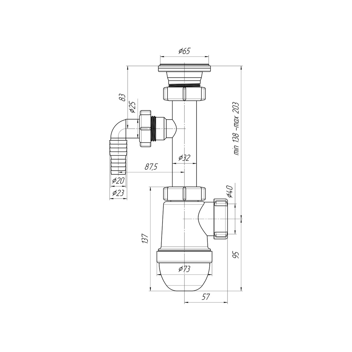 Сифон для умывания бутылочного типа с нержавеющей решеткой 65мм. С отводом для подключения бытовой техники. Выход для подключения к канализации 40мм.Форма сифона позволяет поддерживать хорошую пропускную способность слива сточной воды, выполняя свою главную функцию - формирование гидрозатвора для отсечения неприятных запахов из канализации.Конструкция позволяет легко, без демонтажа, снять отстойник (стакан) и почистить сифон в случае засорения, достать случайно упавшие в слив раковины мелкие ценные вещи.