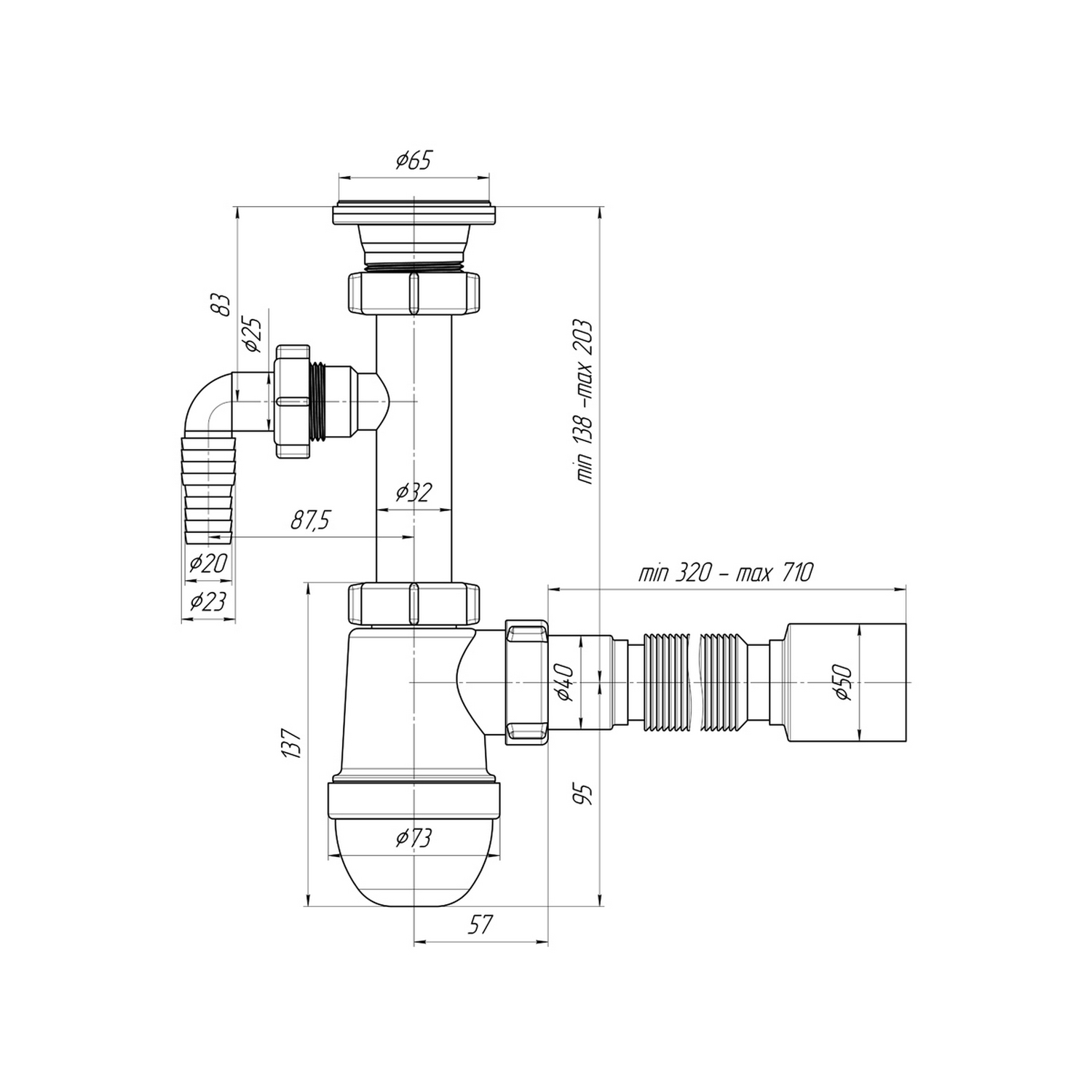 Сифон для умывания с диаметром слива 40-52мм, бутылочного типа, с нержавеющей решеткой 65мм. С отводом для подключения бытовой техники. Для подключения к канализации комплектуется гибкой трубой 40*50мм.Форма сифона позволяет поддерживать хорошую пропускную способность слива сточной воды, выполняя свою главную функцию - формирование гидрозатвора для отсечения неприятных запахов из канализации.Конструкция позволяет легко, без демонтажа, снять отстойник (стакан) и почистить сифон в случае засорения, достать случайно упавшие в слив раковины мелкие ценные вещи.