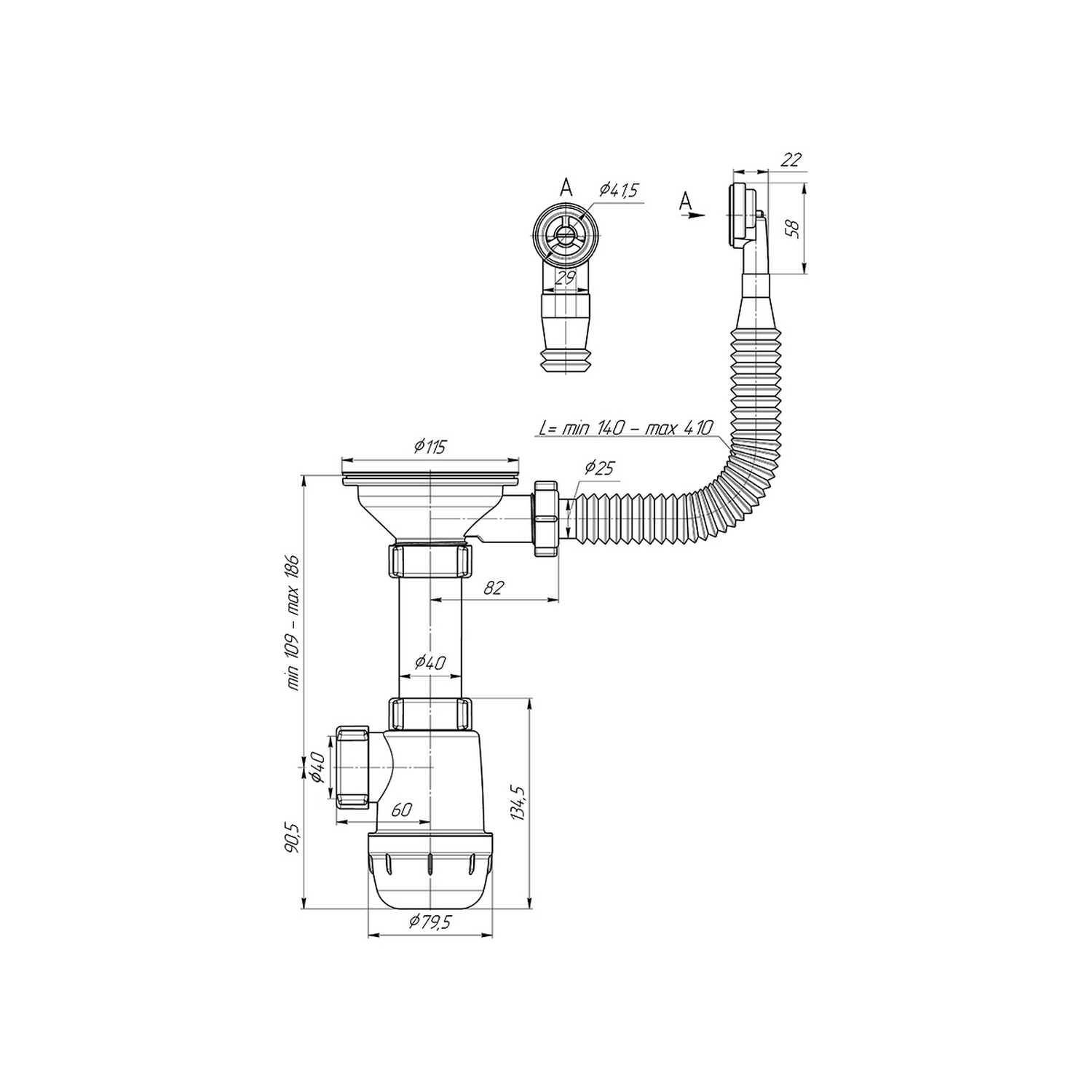 Сифон для кухонных моек с диаметром сливного отверстия 90мм, бутылочного типа с увеличенным корпусом, с разборным выпуском и нержавеющей решеткой, с гибким прямоугольным переливом для моек из нержавеющей стали. Корпус перелива оборудован универсальной прокладкой для круглых и прямоугольных моек, нужная сторона прокладки достигается путем переворота. Выход для подключения к канализации 40мм.Форма сифона позволяет поддерживать хорошую пропускную способность слива сточной воды, выполняя свою главную функцию - формирование гидрозатвора для отсечения неприятных запахов из канализации.Конструкция позволяет легко, без демонтажа, снять отстойник (стакан) и почистить сифон в случае засорения, достать случайно упавшие в слив раковины мелкие ценные вещи.