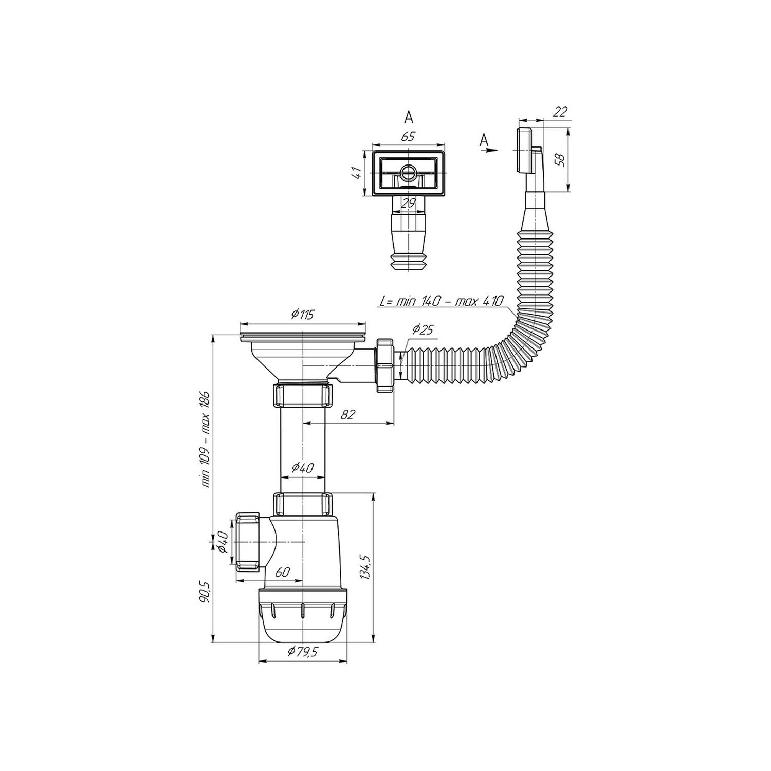 Сифон сливной АНИ пласт A0145S для кухонных моек с диаметром сливного отверстия 90-98 мм, бутылочного типа с увеличенным корпусом, с разборным выпуском и нержавеющей решеткой, с гибким прямоугольным переливом. Корпус перелива оборудован универсальной прокладкой для круглых и прямоугольных моек, нужная сторона прокладки достигается путем переворота. Выход для подключения к канализации 40мм. Высота 105 - 185 мм.Форма сифона позволяет поддерживать хорошую пропускную способность слива сточной воды, выполняя свою главную функцию - формирование гидрозатвора для отсечения неприятных запахов из канализации.Конструкция позволяет легко, без демонтажа, снять отстойник (стакан) и почистить сифон в случае засорения, достать случайно упавшие в слив раковины мелкие ценные вещи.Комплектация: сифон с прямоугольным гибким переливом, упаковка.