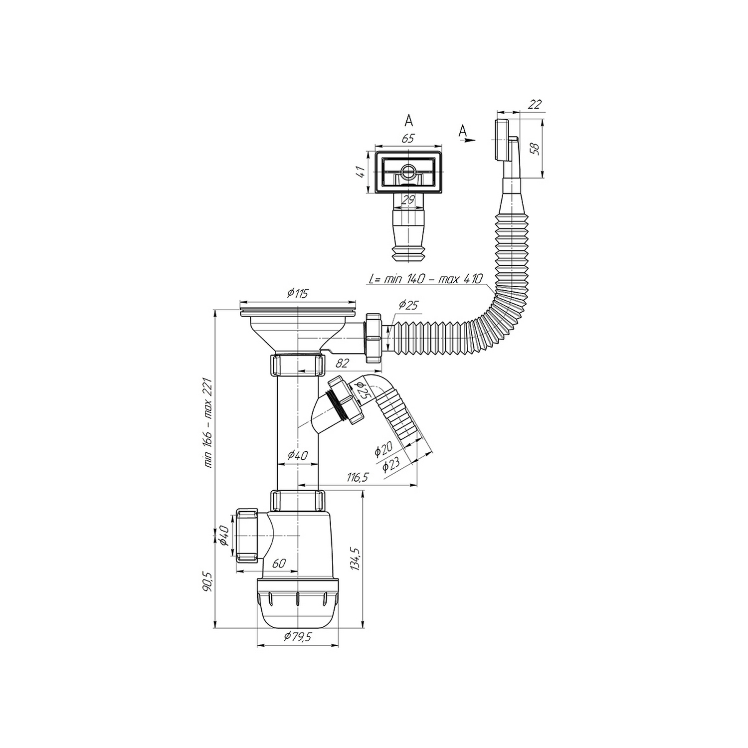 Сифон для кухонных моек с диаметром сливного отверстия 90мм, бутылочного типа с увеличенным корпусом, разборным выпуском и нержавеющей решеткой, с отводом для подключения бытовой техники. С гибким прямоугольным переливом для моек из нержавеющей стали. Выход для подключения к канализации 40мм.Форма сифона позволяет поддерживать хорошую пропускную способность слива сточной воды, выполняя свою главную функцию - формирование гидрозатвора для отсечения неприятных запахов из канализации.Конструкция позволяет легко, без демонтажа, снять отстойник (стакан) и почистить сифон в случае засорения, достать случайно упавшие в слив раковины мелкие ценные вещи.