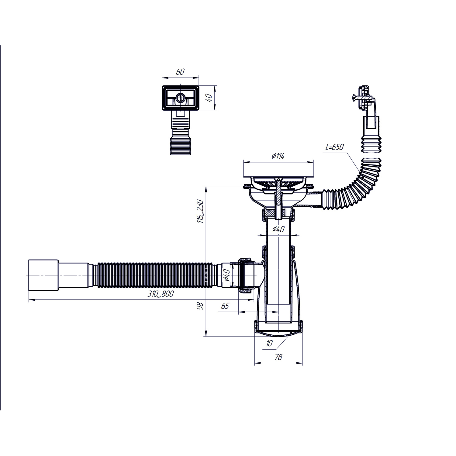 Сифон 3 1/2*40 с прямоуг. переливом, с гофрой 40*40*50 (800мм) BKG4080 ИНКОПЛАСТ
