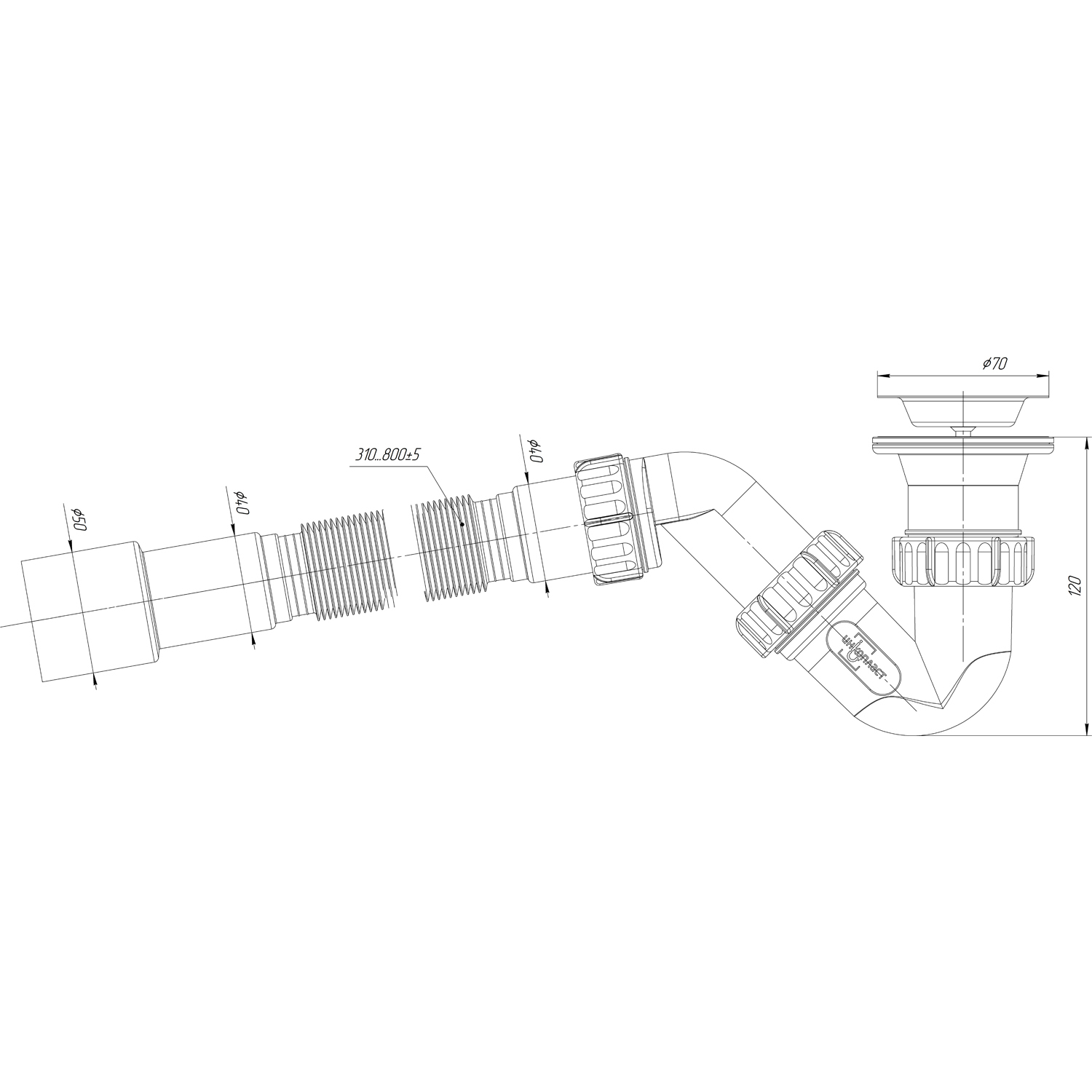 Сифон для душ. поддона 40*40 с гофрой 40*40*50 (800мм) BT8080 ИНКОПЛАСТ