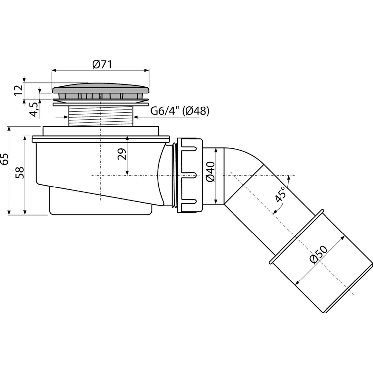 Область применения:- для слива воды из душевых поддонов;- для душевых поддонов со сливным отверстием 52 мм;- для душевых поддонов без перелива.Свойства:- самоочищающаяся конструкция сифона;- сниженная высота монтажа 65 мм;- устойчивость к термическим и химическим воздействиям. Технические параметры: - гидрозатвор 35 мм;- скорость стока воды 52 л/мин;- термическая устойчивость 95° С.