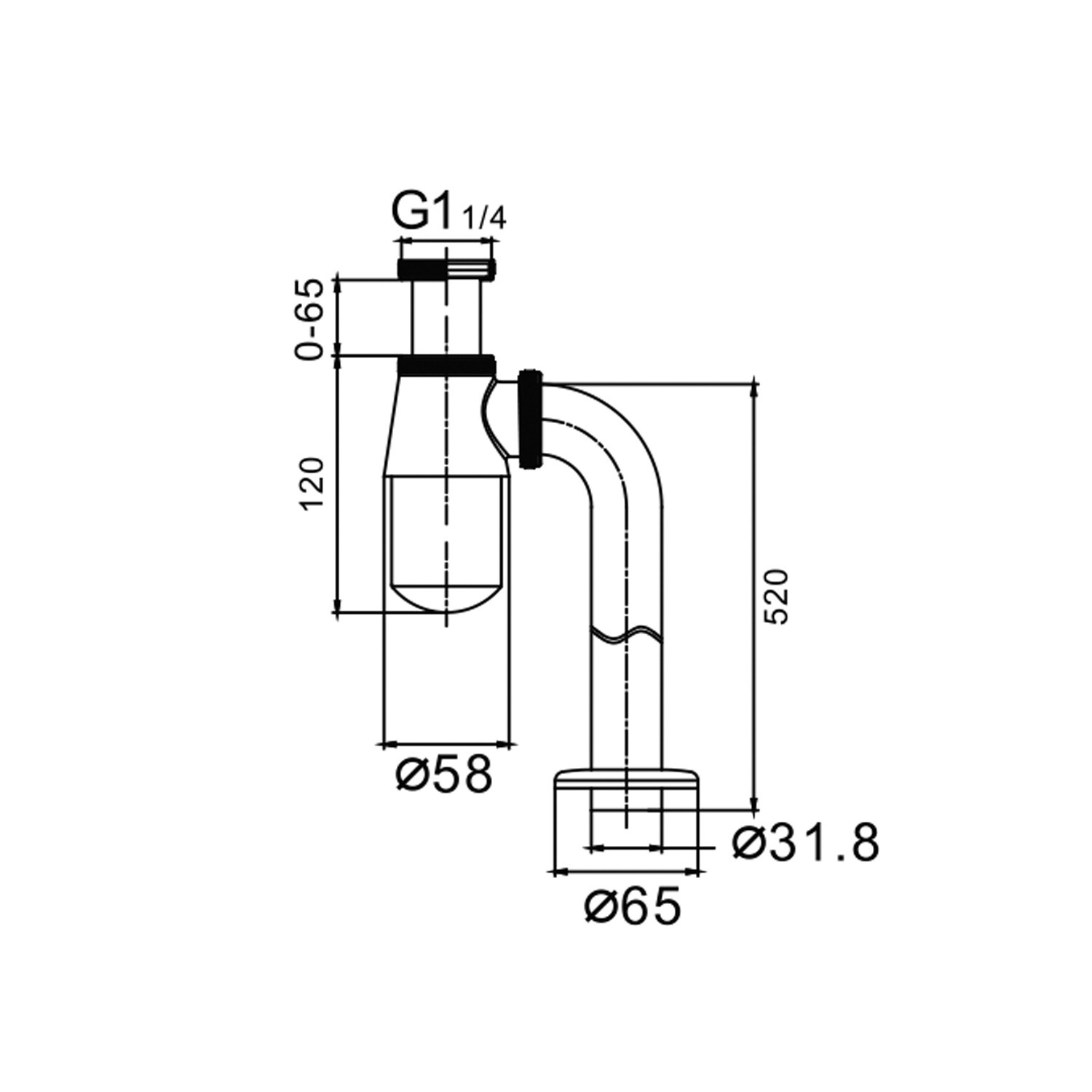 Сифон комбинированный для мойки/умывальника с отстойником (бутылкой), с металлической изогнутой (90 гр.) трубкой (выход в пол). Диаметр слива - 1 1/4".