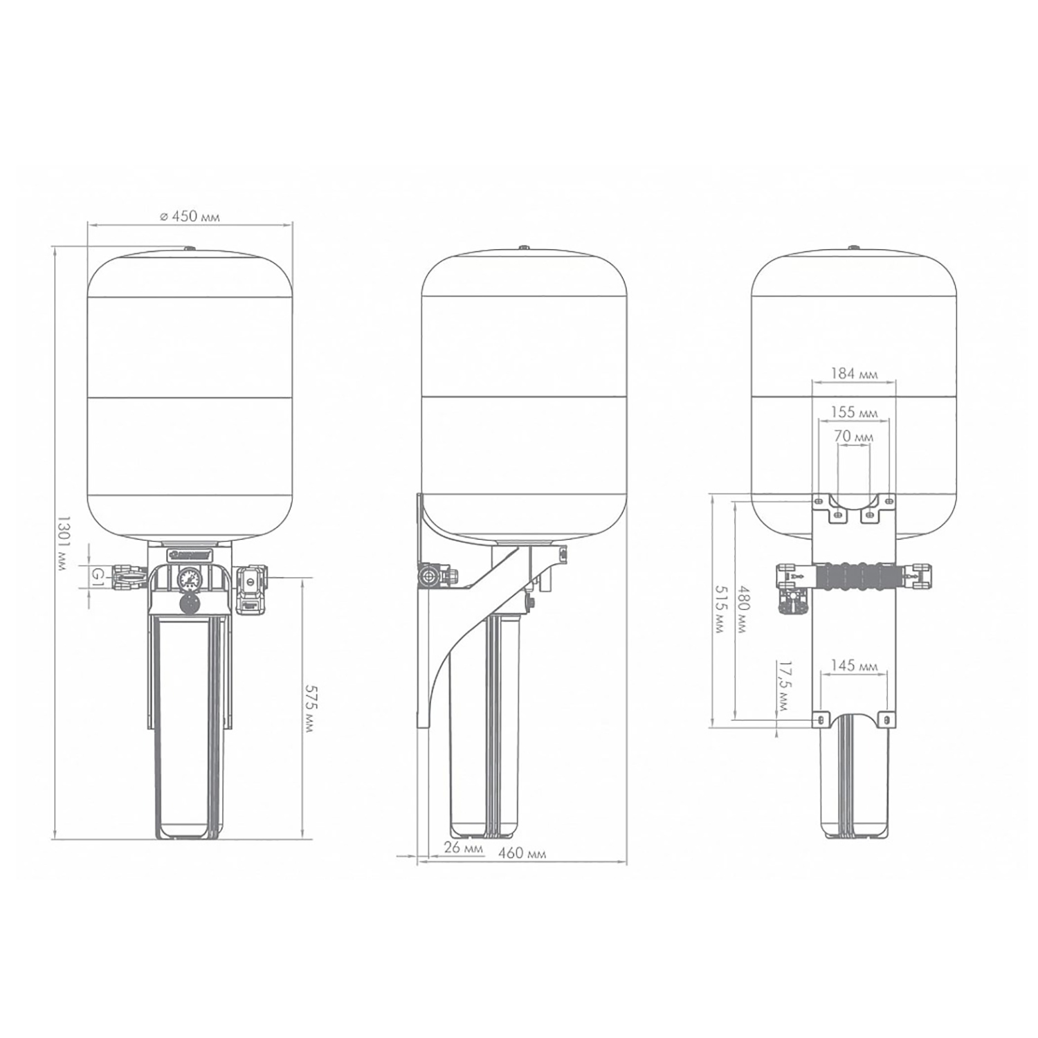 Система предназначена для поддержания заданного давления в системах водоснабжения с предварительной фильтрацией воды. Легкий и удобный монтаж. Не требует дополнительной настройки. Автоматическое управление включением/выключением электронасоса. Полный комплект для автоматизации системы водоснабжения. Предварительная фильтрация воды. Календарь смены картриджей фильтра. Вся система устойчива к коррозии. Позволяют подключаться в любом удобном месте магистрали вне зависимости от направления потока воды. Объем бака 100 литров.