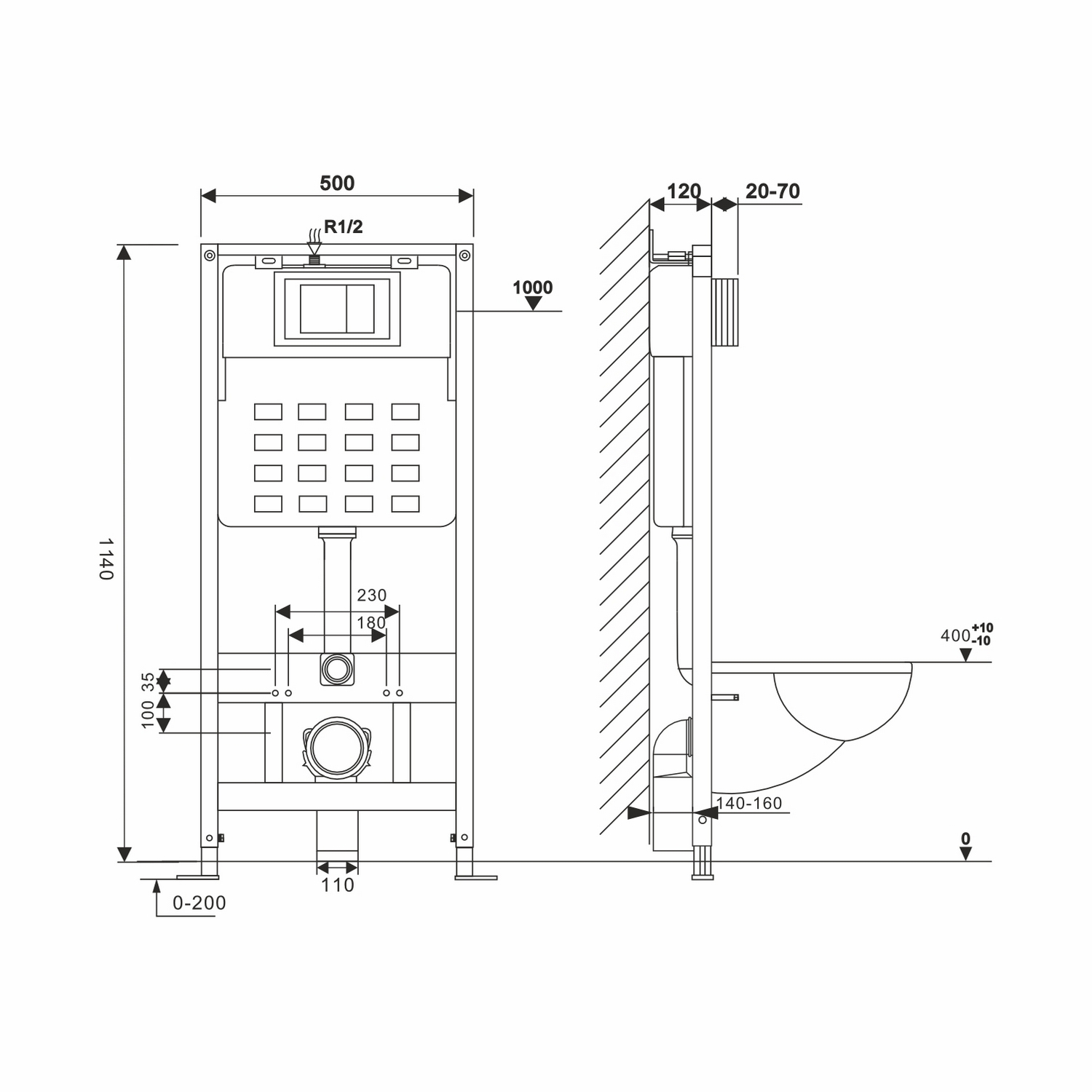 Система инсталляции WAVE с механической системой запуска смыва, без кнопки в комплекте.Монтажная рама выполнена из стального профиля. Порошковое покрытие повышает антикоррозионную стойкость, является экологически безопасным. Надежная конструкция гарантирует длительную эксплуатацию всей системы.Преимущества систем инсталляции WAVE:- монтажная рама с порошковым покрытием;- расчетная нагрузка 450 кг;- регулируемая высота монтажа; - межосевое расстояние под шпильки для подвеса унитаза 180 и 230 мм;- толщина бачка 80 мм;- минимальная глубина установки;- механизм регулируемого двойного смыва: полный (6 л) и эконом режим (3 л);- полный комплект подключения;- наличие звукоизоляционной компенсирующей пластины;- совместимость со всеми видами подвесных унитазов;Гарантия 10 лет.