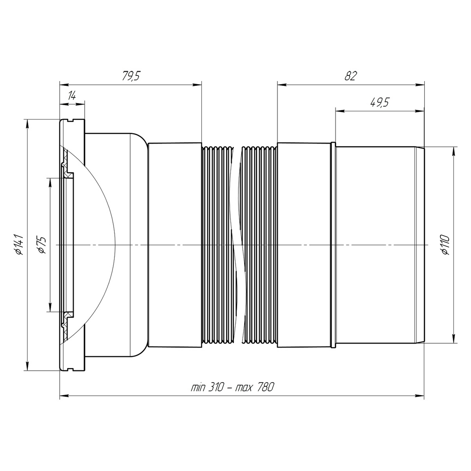 Максимальная длина растяжения слива, мм
